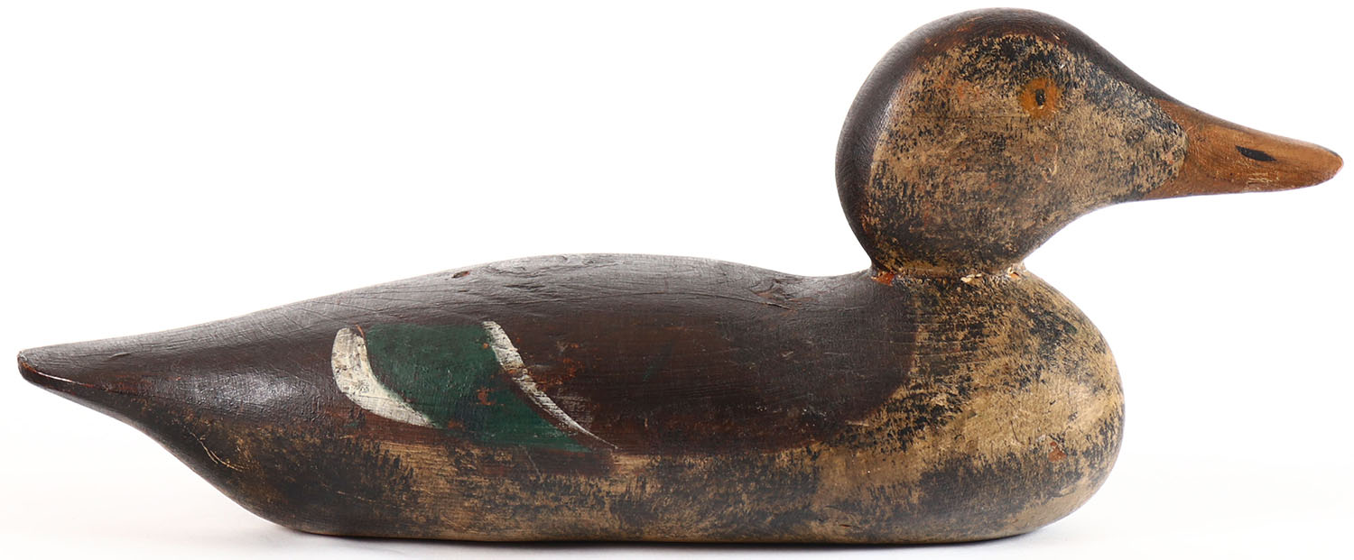Mallard Hen by Mason Decoy Company, Detroit, MI, 1896-1924, Standard Grade, painted eyes, solid wood, original paint, structurally excellent. Grade: Very Good ++ - Value: 150 to 250