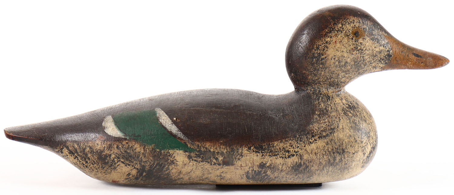 Mallard Hen by Mason Decoy Company, Detroit, MI, 1896-1924, Painted Eye model, solid wood, strong original paint, structurally excellent. Grade: Excellent - Value: 200 to 400