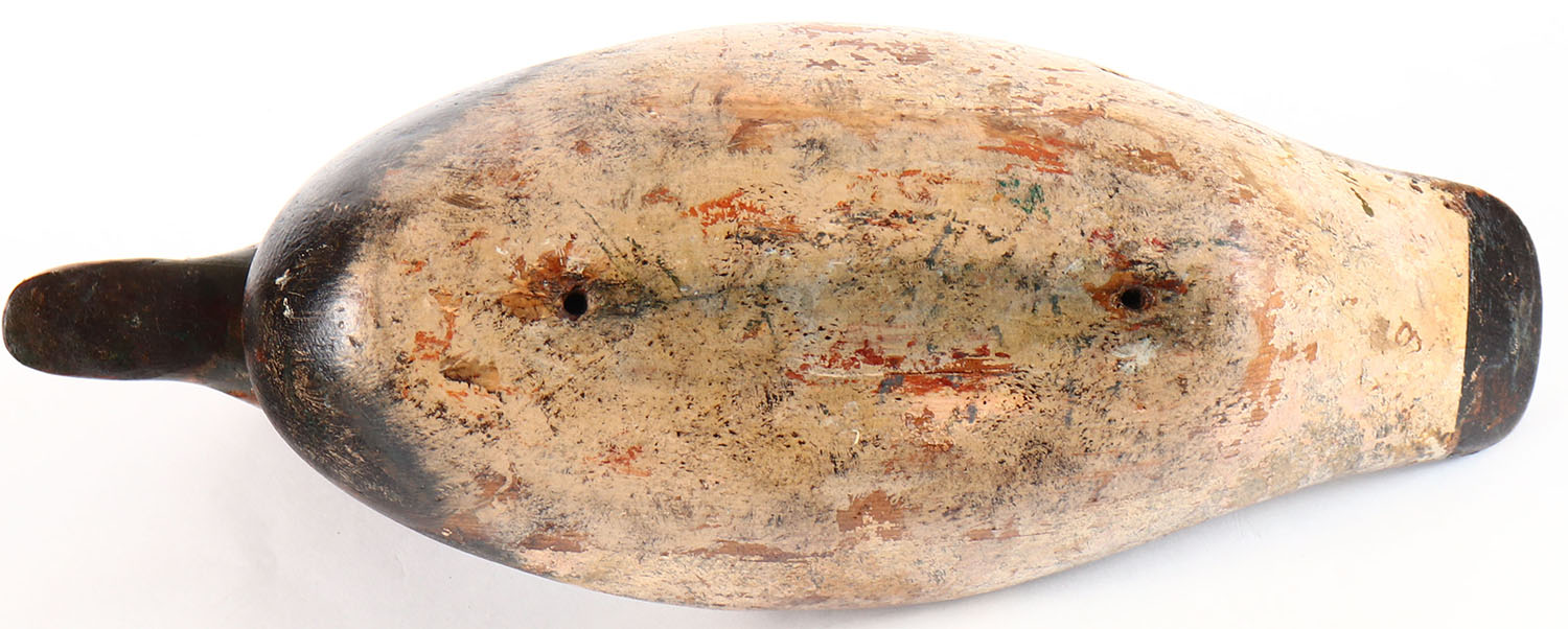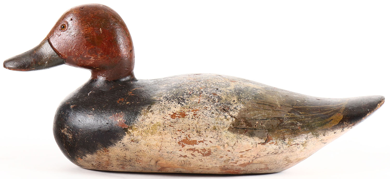 Redhead Drake by Dodge Decoy Factory, Detroit, MI, 1883-1893, Standard Grade, glass eyes, solid wood, worn apparent all original paint. Grade: Excellent - Value: 200 to 300