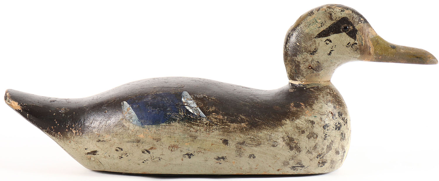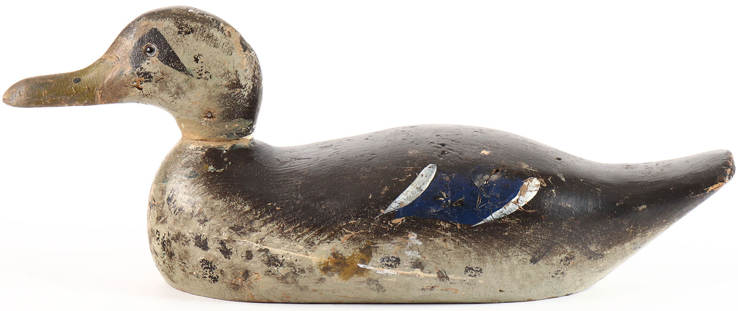 Hen Mallard by Pratt Decoy Co., Chicago, IL, 1921-1939, Standard Grade, glass eyes, solid wood, original paint, head is loose. Grade: Very Good ++ - Value: 30 to 60