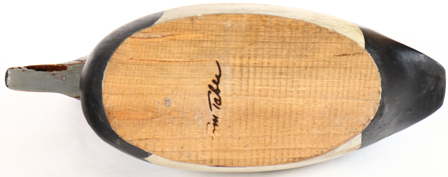 Redhead Drake by Tom Taber, glass eyes, solid wood, original paint, sliver of wood off bill. Grade: Excellent - Value: 6 to 20