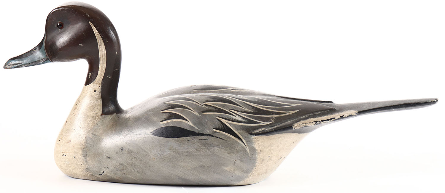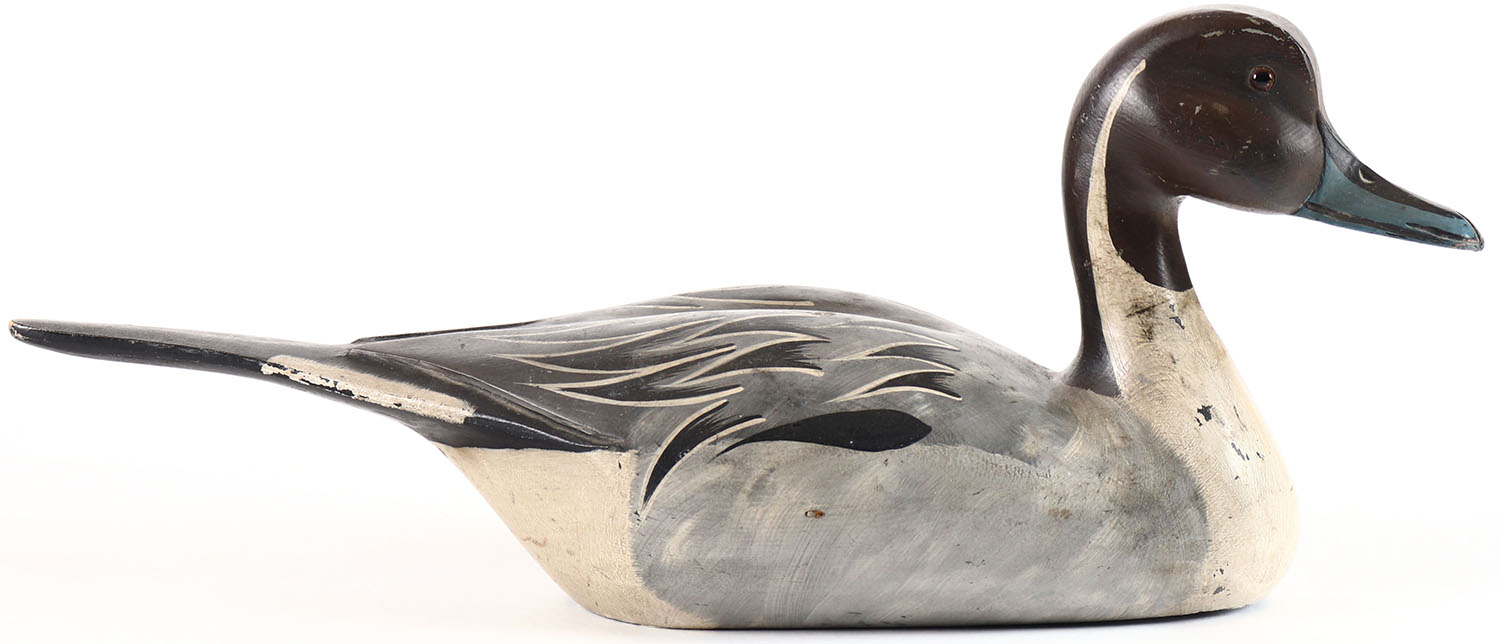 Pintail Drake by unknown factory maker, glass eyes, hollow wood, original paint, structurally excellent. Grade: Excellent + - Value: 20 to 40