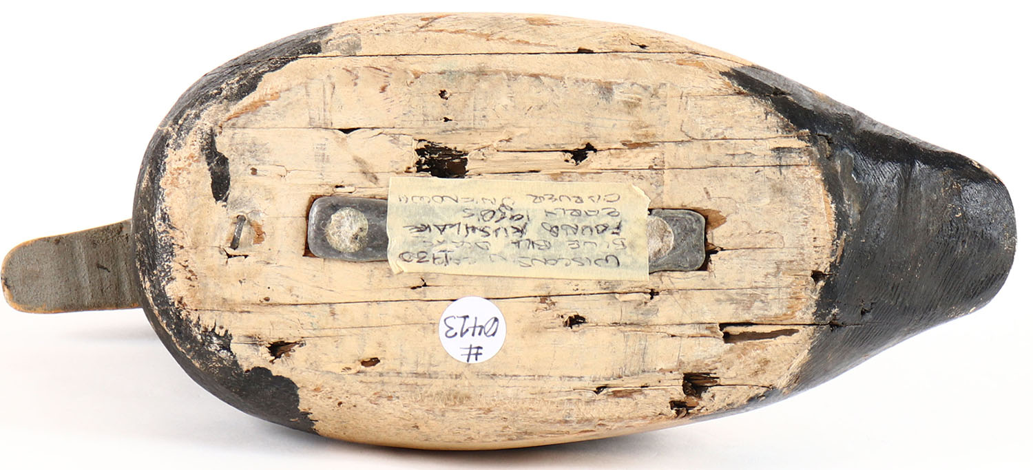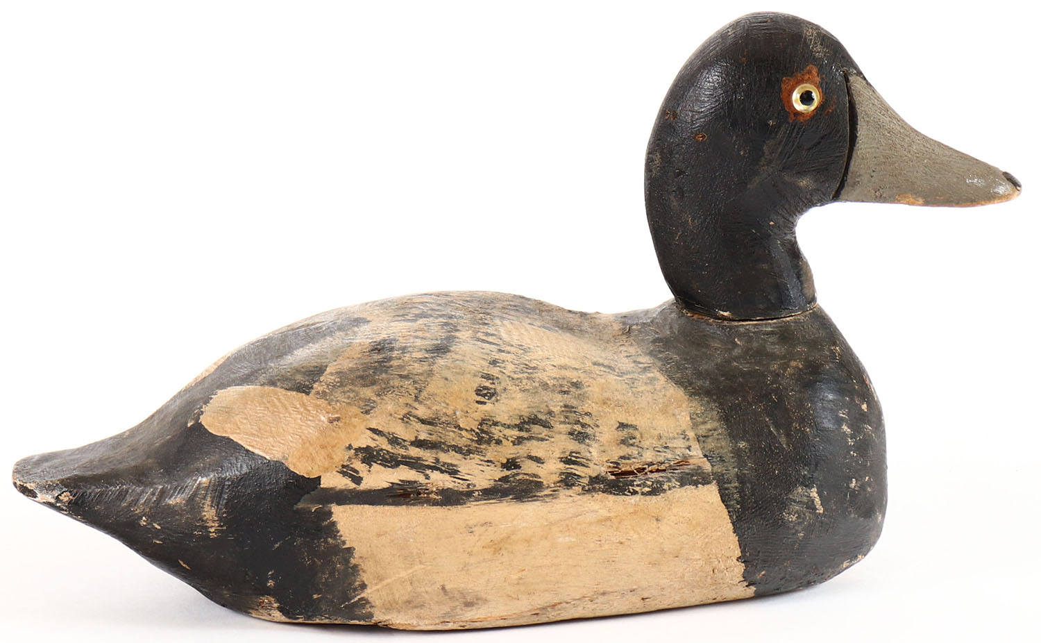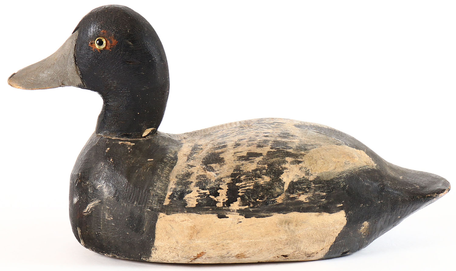 Bluebill Drake by unknown Wisconsin maker, glass eyes, solid wood, apparent original paint, structurally excellent. Grade: Excellent - Value: 26 to 100