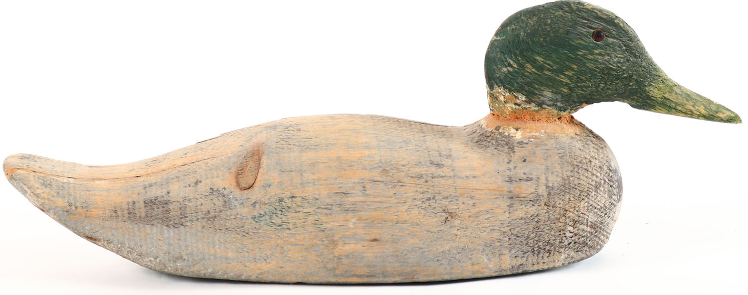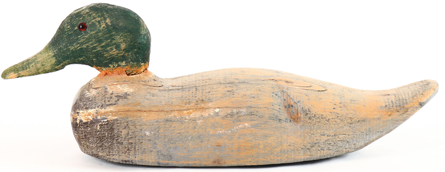 Mallard Drake by Victor in worn original paint with paint added, glass eyes, solid wood, structurally excellent. Grade: Very Good + - Value: 2 to 15