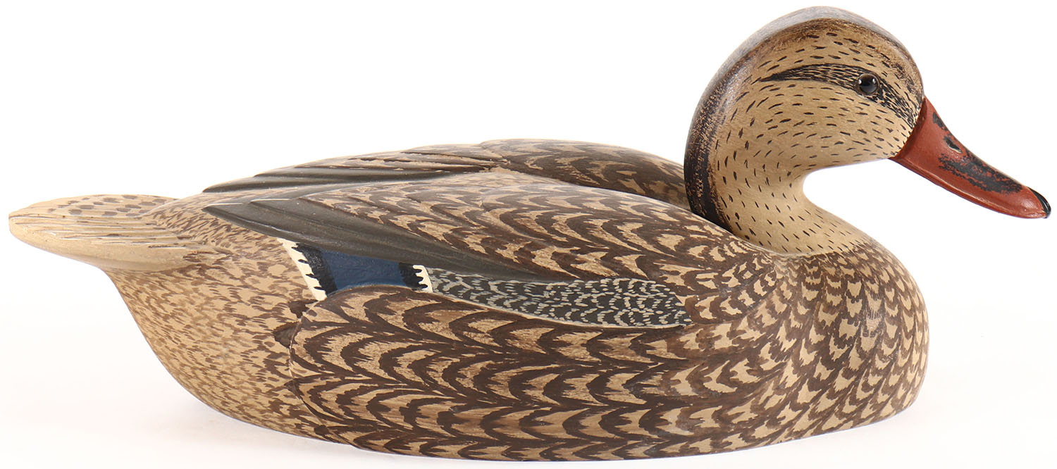 Mallard Hen by B.M. Henson, glass eyes, solid wood, original paint, structurally excellent. Grade:Excellent + - Value: 30 to 60