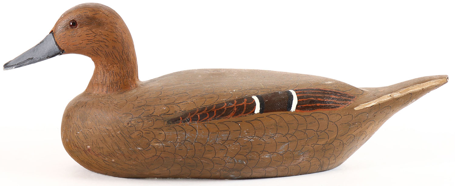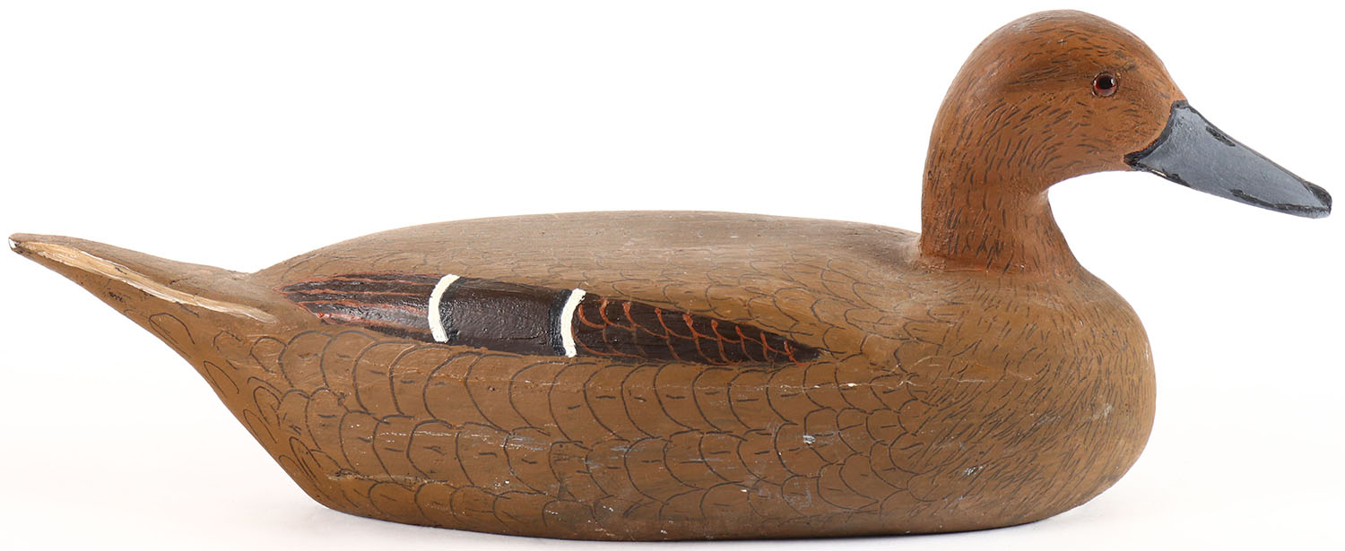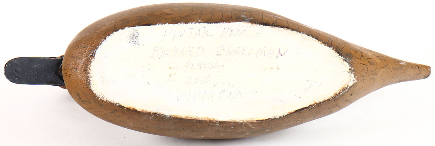 Pintail Hen by Richard Engelman, Peru, IL, Vivianna, glass eyes, solid wood, original paint, structurally excellent. Grade: Excellent - Value: 26 to 50