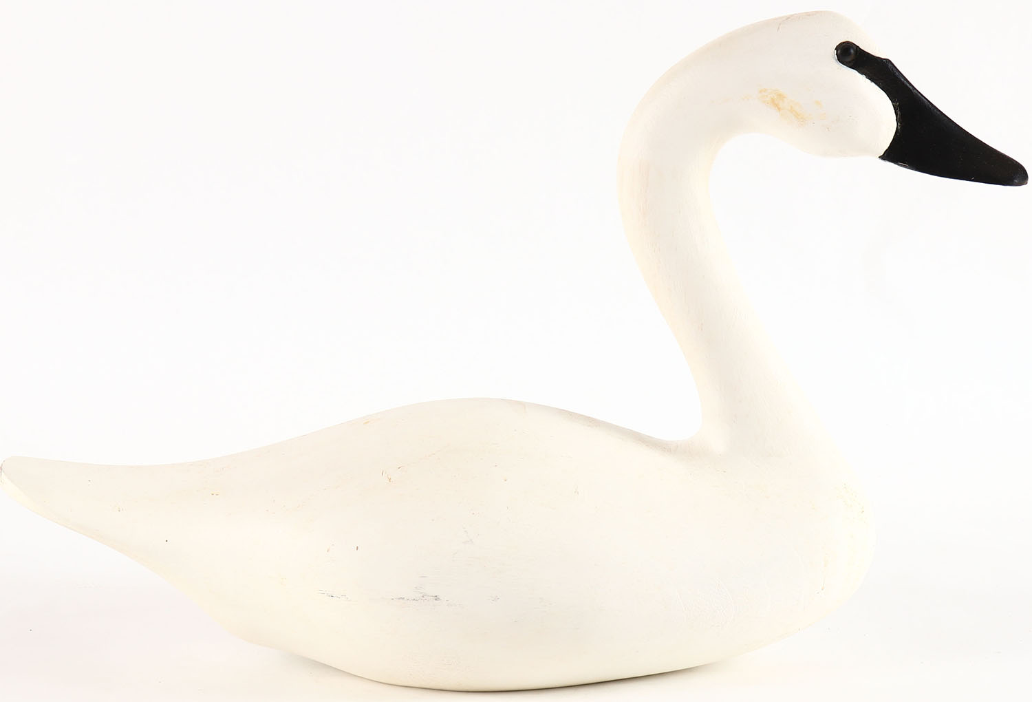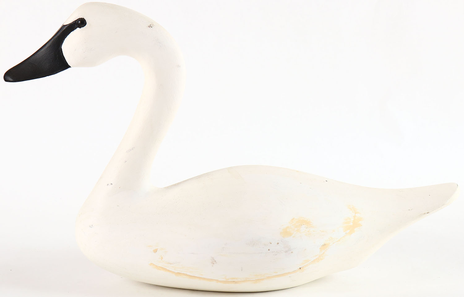 Swan by unknown maker, half size at 20, painted eyes, solid wood, original paint, structurally excellent. Grade: Excellent - Value: 10 to 20