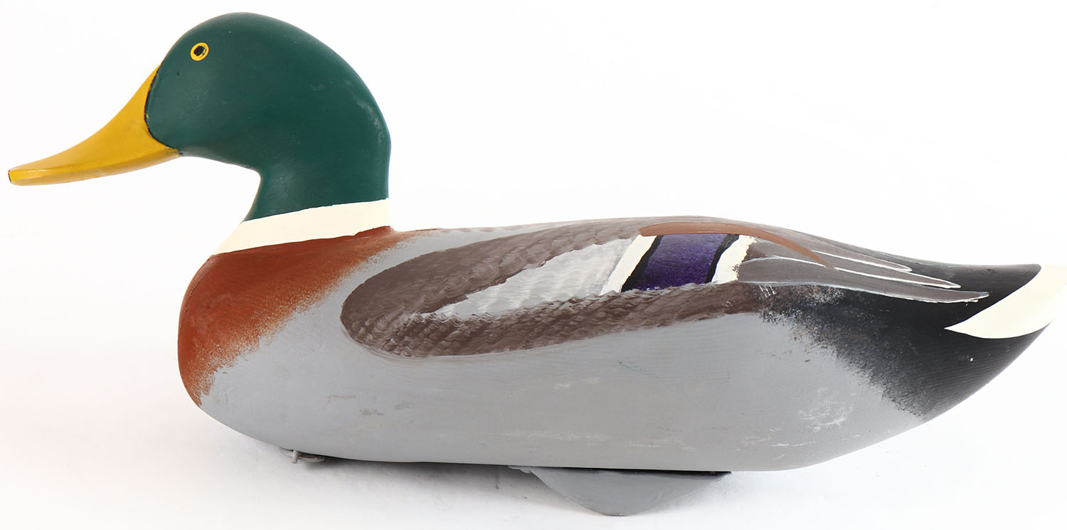 Mallard Drake by Patrick Vincent, Churchville, VA, painted eyes, solid wood, original paint, structurally excellent, signed on bottom by PATRICK VINCENT. Grade: Excellent ++ - Value: 30 to 60