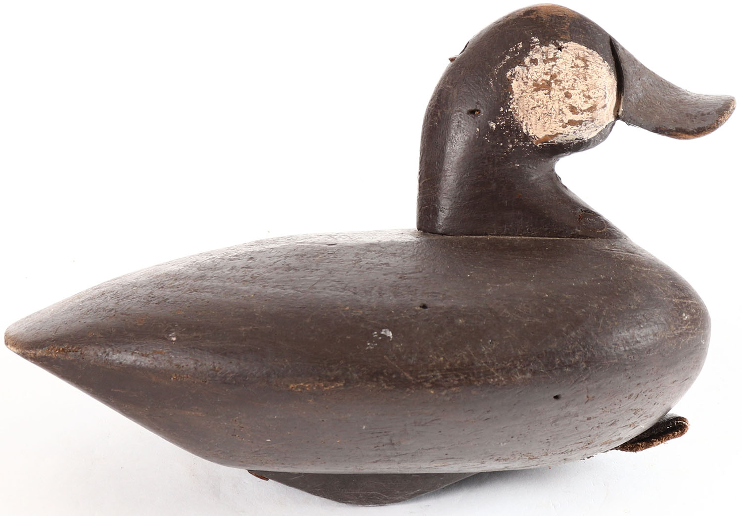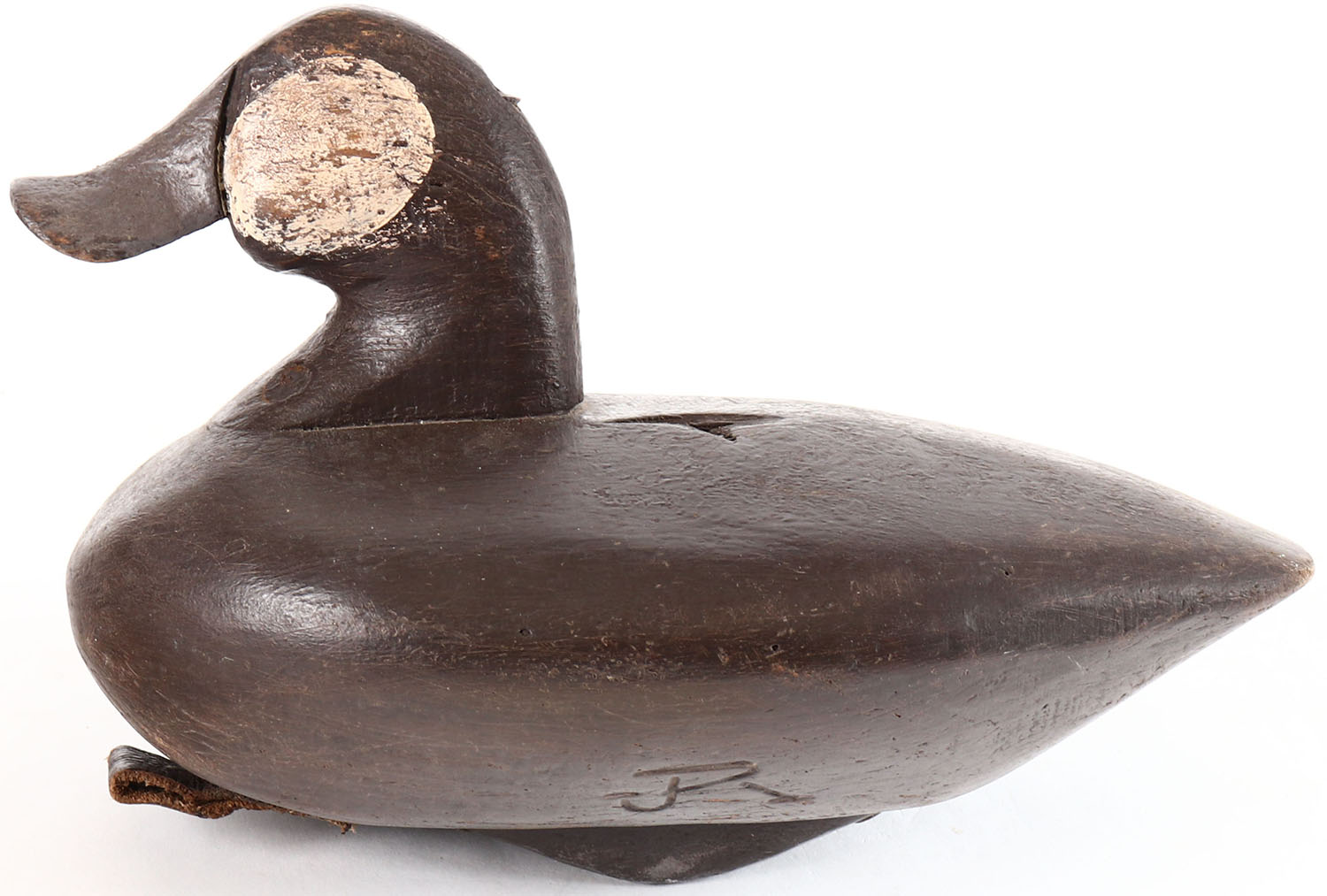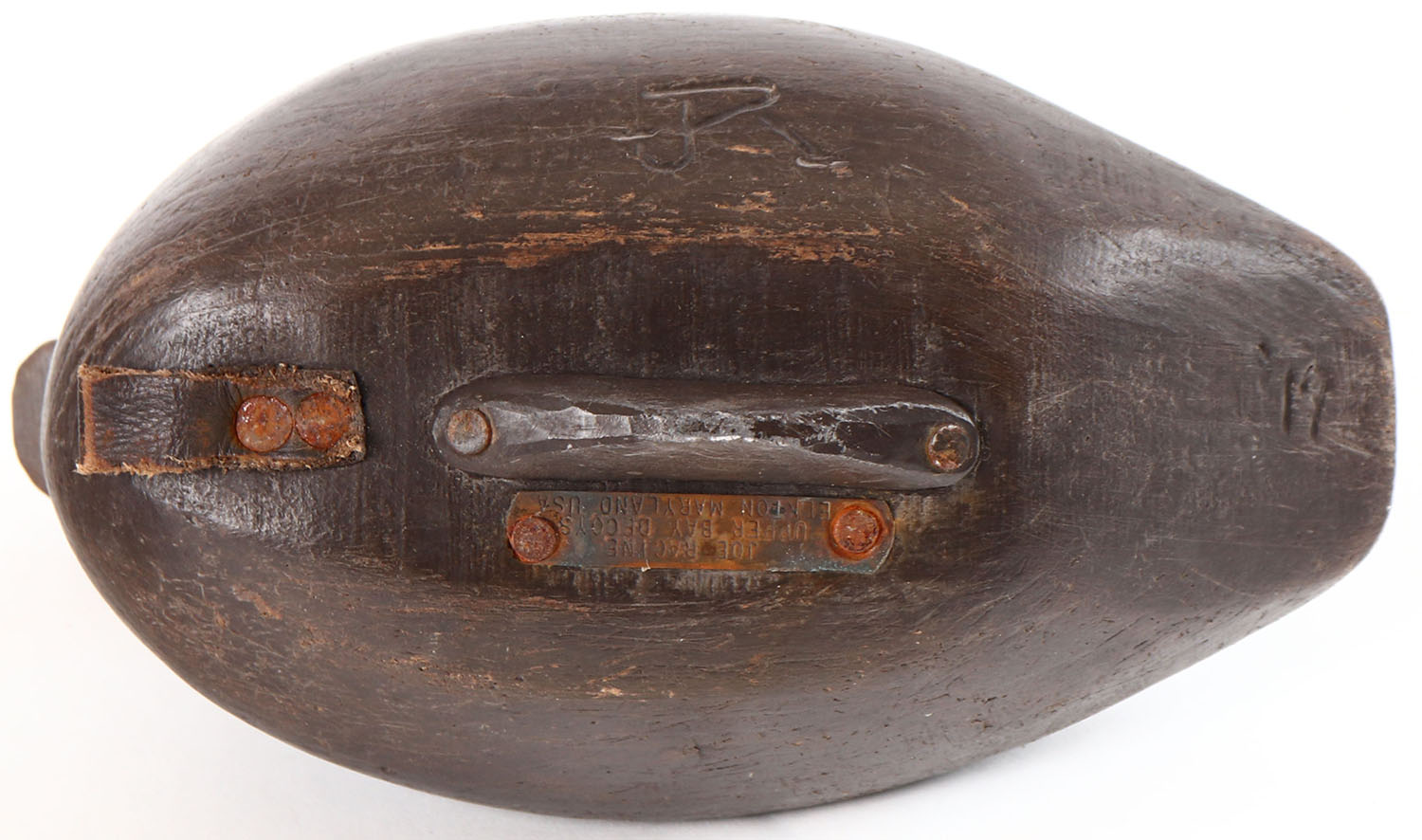 Ruddy duck Hen by Joe Racine, Upper Bay Decoys, Elkton Maryland, no eyes, solid wood, original paint, structurally excellent, branded by JOE RACINE on bottom. Grade: Excellent - Value: 20 to 40