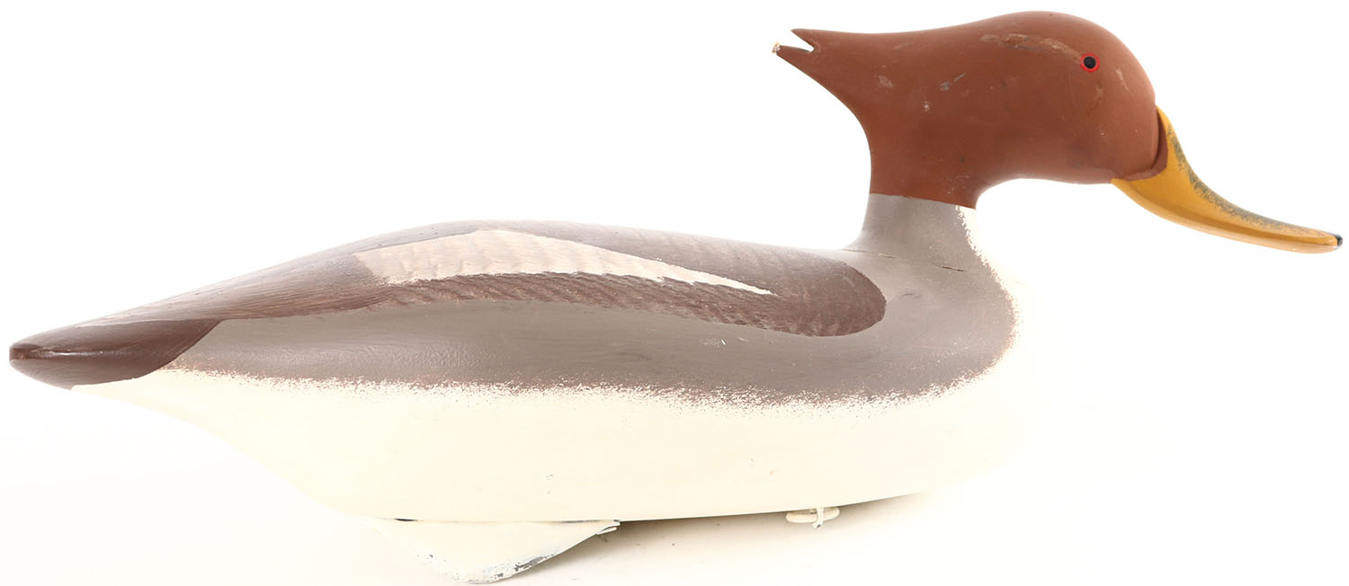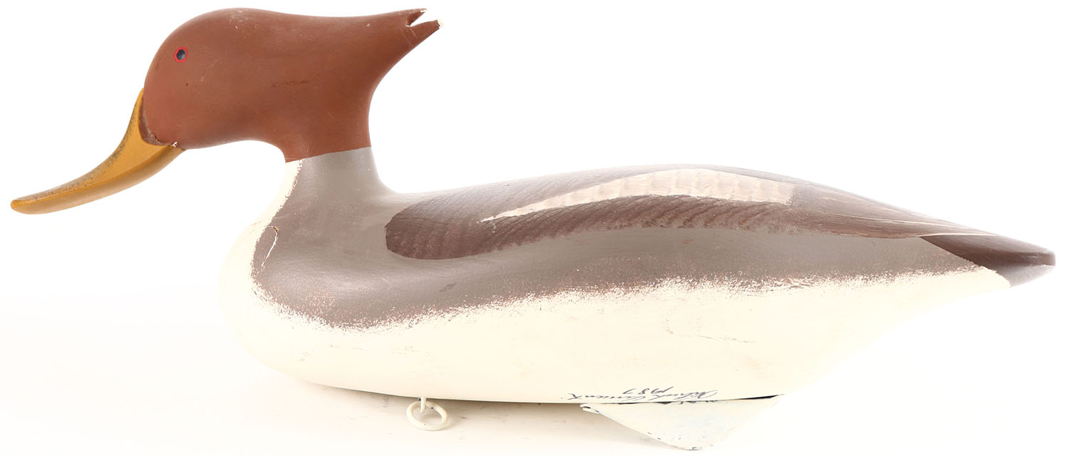 Merganser by Patrick Vincent, Churchville, VA, painted eyes, solid wood, original paint, structurally excellent. Grade: Excellent ++ - Value: 30 to 60