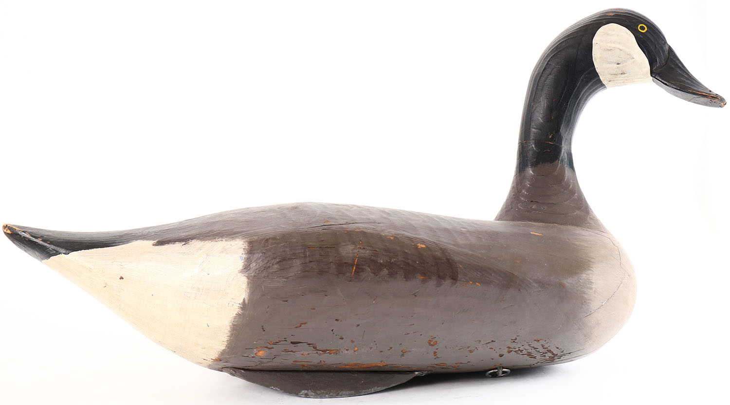 Canada Goose by unknown Maryland maker, painted eyes, solid wood, original paint with working wear, has age crack on back and around neck. Grade: Very Good - Value: 70 to 150