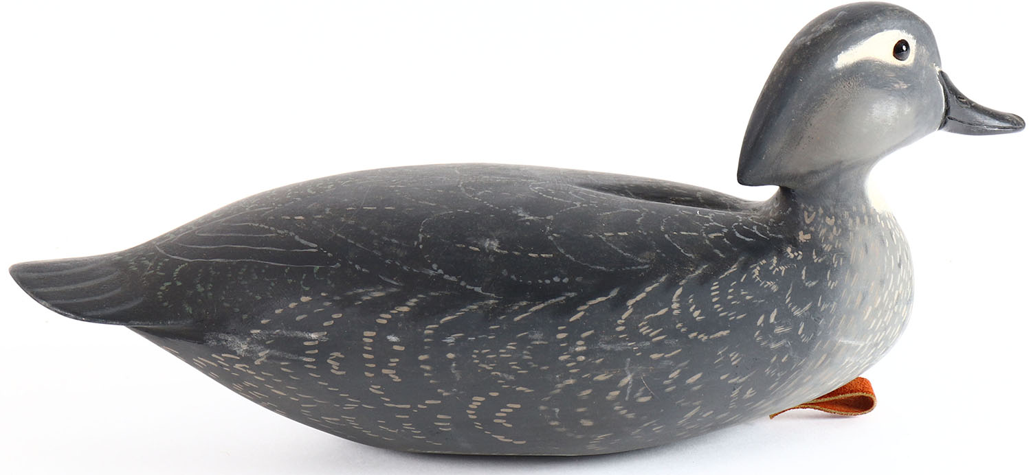 Woodduck Hen by George Snyder, Medford, NJ, glass eyes, solid wood, original paint, structurally excellent, signed on bottom by G. SNYDER. Grade: Excellent + - Value: 40 to 80