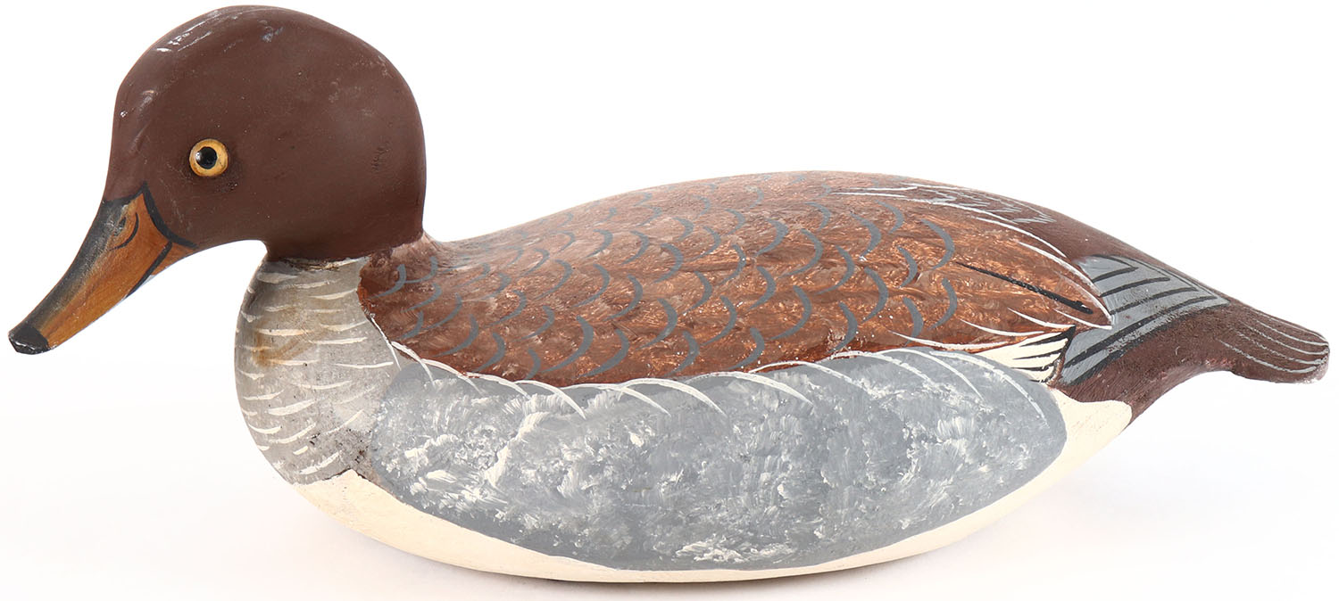 Goldeneye Hen by Zach Ward, Crisfield, MD, King Bee Diver, tack eyes, solid wood, original paint, structurally excellent, signed on bottom. Grade: Excellent - Value: 20 to 40