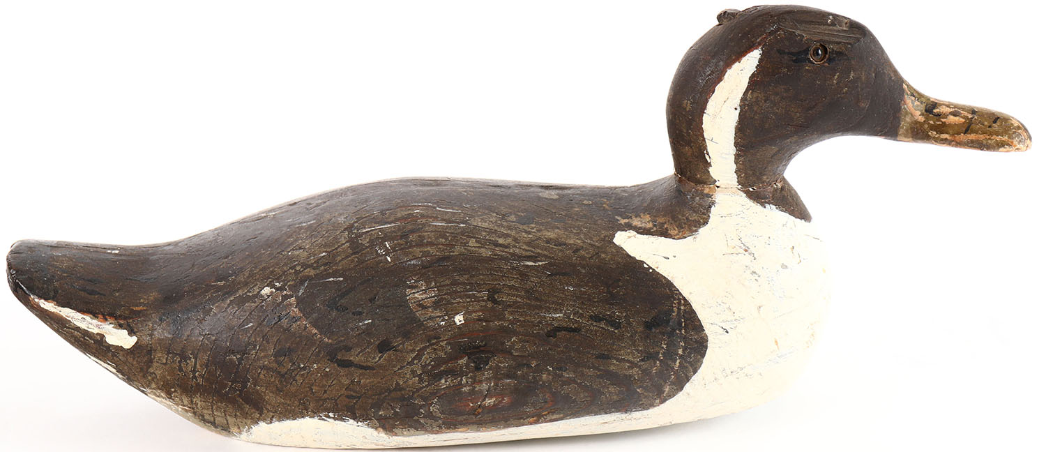 Pintail Drake by Pratt Decoy Co., glass eyes, solid wood, repainted, structurally excellent. Grade: Very Good ++ - Value: 10 to 20