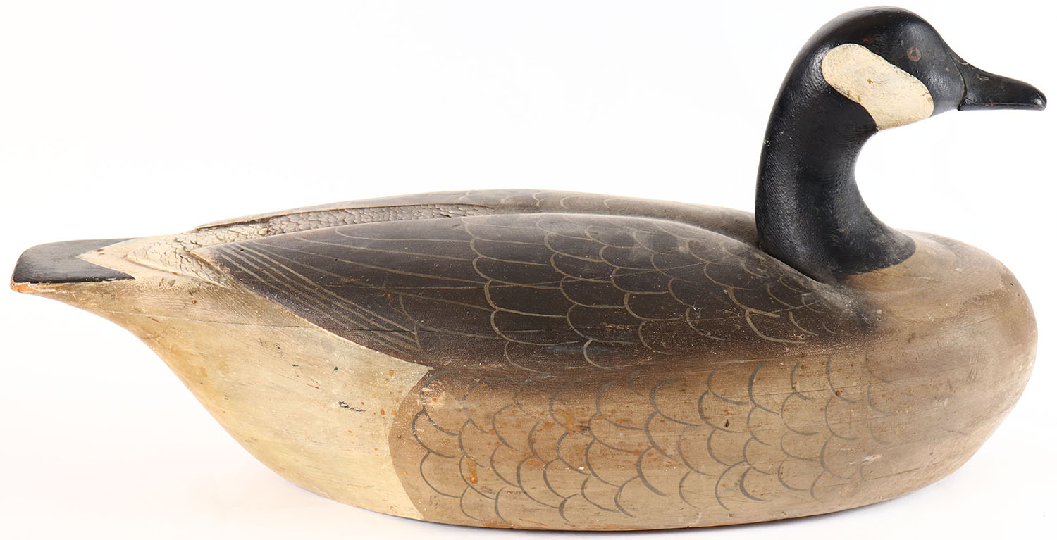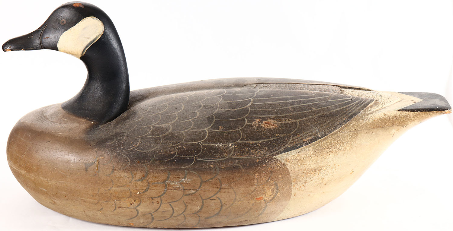Canada Goose by unknown maker, painted eyes, solid wood, original paint, structurally excellent. Grade: Very Good ++ - Value: 50 to 100