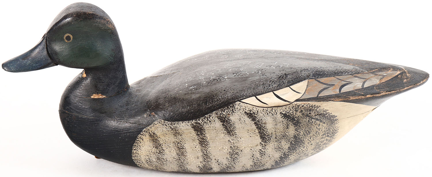 Black Brant by unknown NJ maker, glass eyes, hollow wood, original paint, minor flaking at neck seam, excellent. Grade: Excellent + - Value: 40 to 80