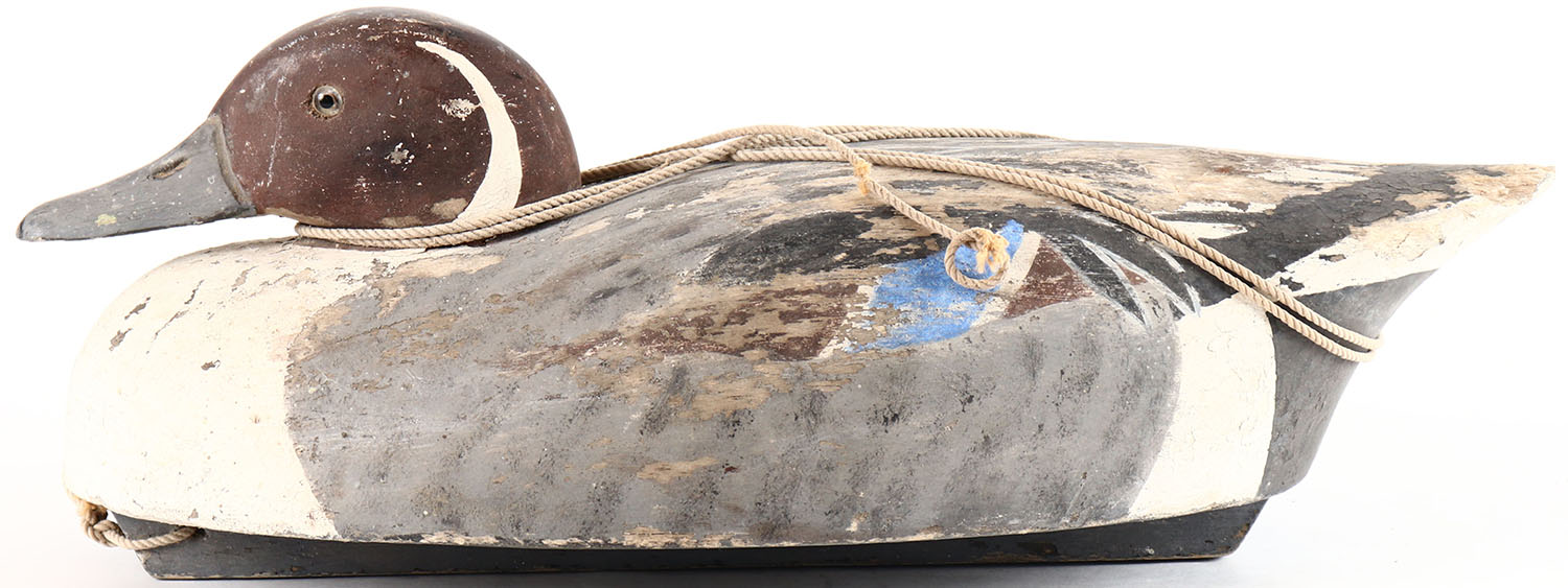 Pintail Drake by Wildfowler, glass eyes, solid balsa wood, mostly repainted, structurally excellent. Grade: Very Good ++ - Value: 10 to 30