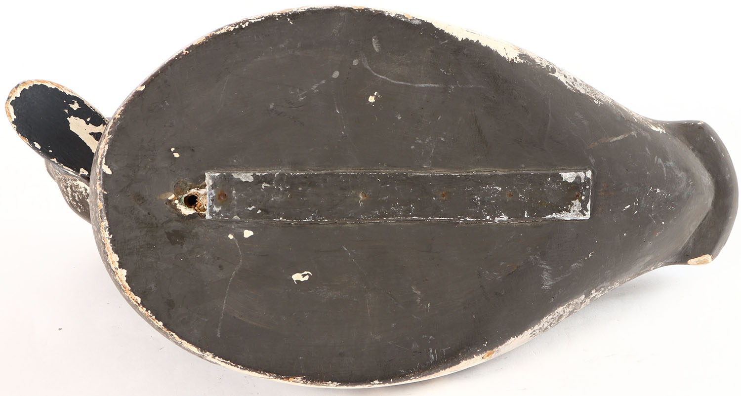 Bluebill Hen by unknown maker, glass eyes, solid wood, original paint, has paint chips. Grade: Very Good ++ - Value: 10 to 20