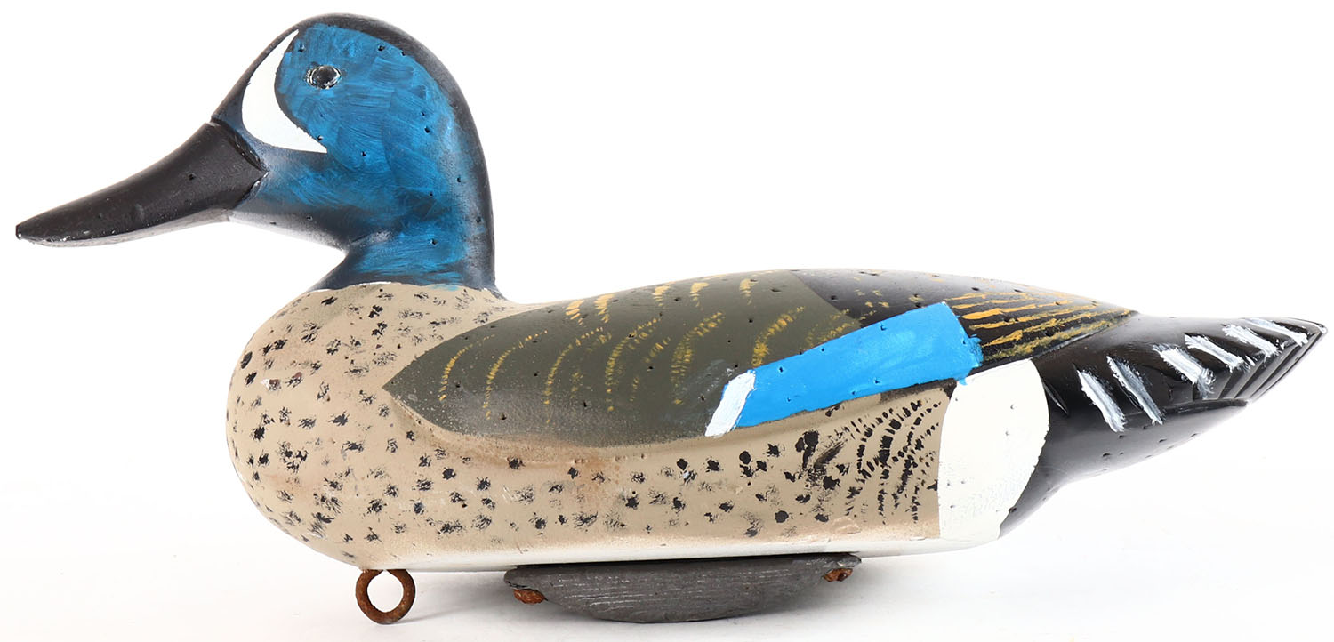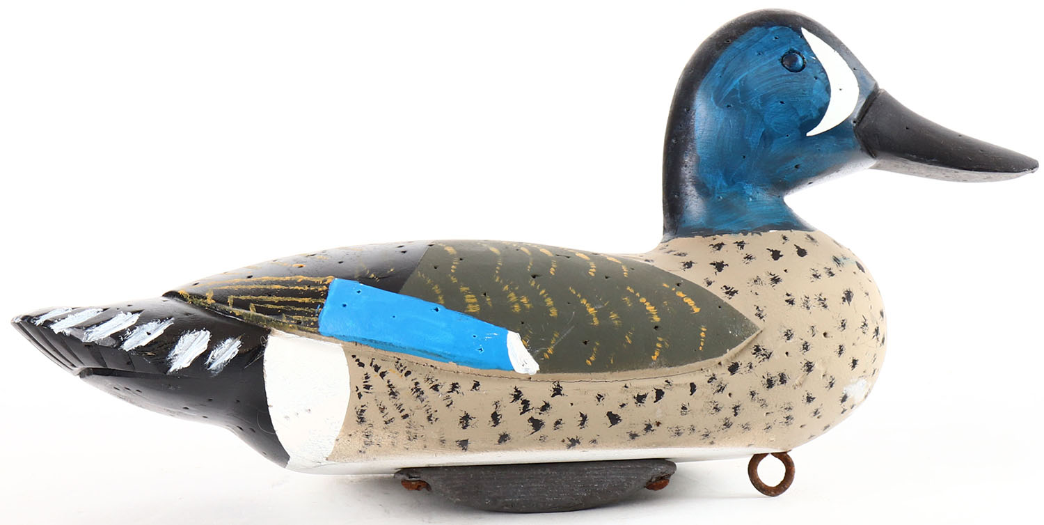 Blue Winged Teal Drake by unknown maker, tack eyes, solid wood, original paint, structurally excellent. Grade: Excellent - Value: 20 to 40