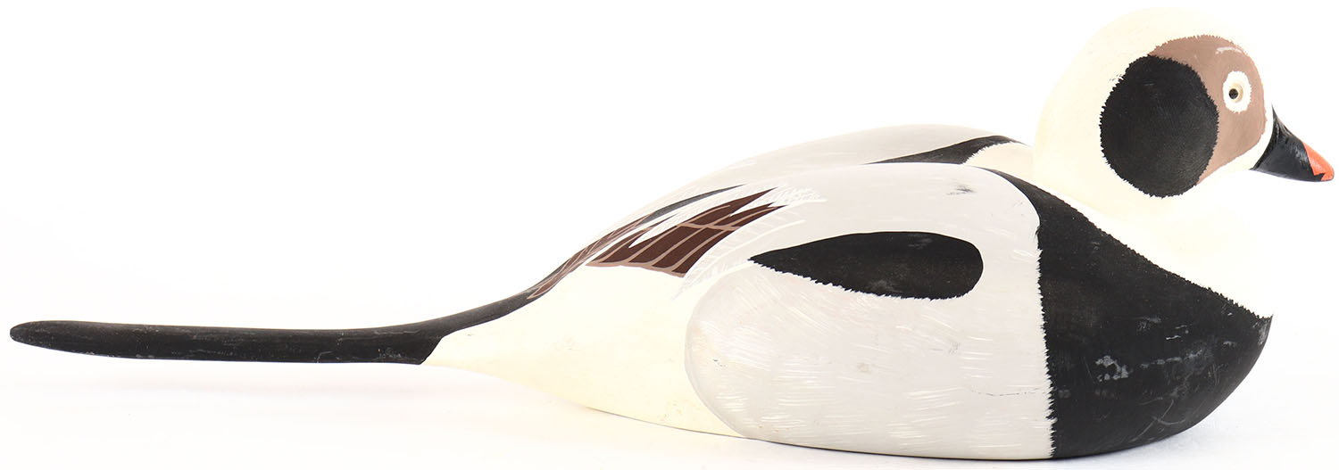 Old Squaw Duck Drake by Capt. Bob Burris, glass eyes, solid wood, original paint, structurally excellent, signed on bottom. Grade: Excellent + - Value: 20 to 40