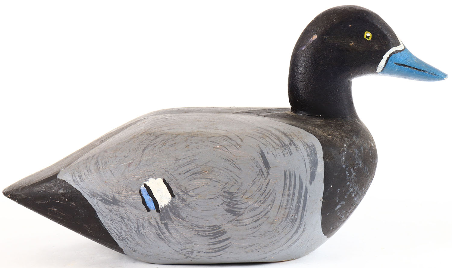 Bluebill Drake by unknown maker, painted eyes, hollow wood, repainted, structurally excellent. Grade: Excellent + - Value: 20 to 40