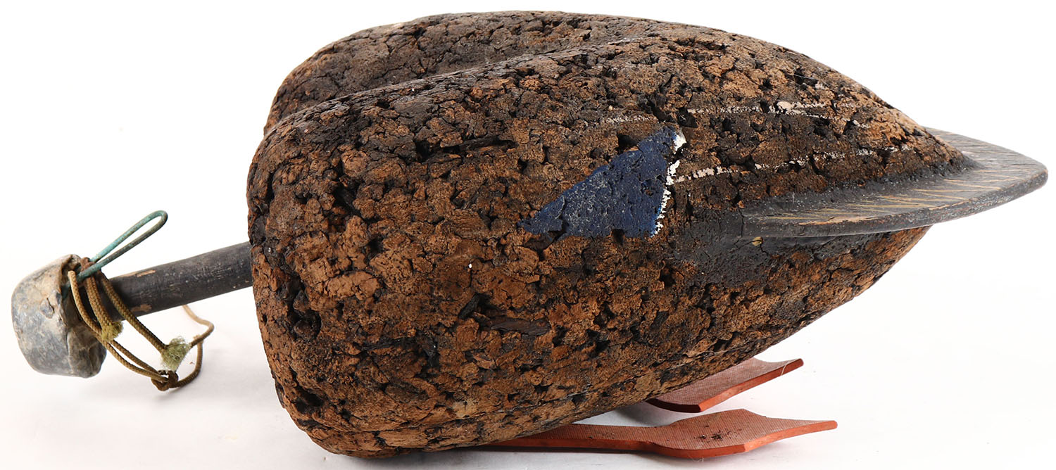 Mallard Hen Butt by unknown maker, solid cork, original paint, structurally excellent. Grade: Very Good ++ - Value: 20 to 40