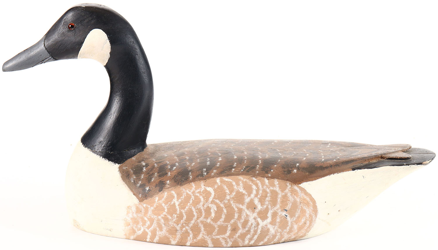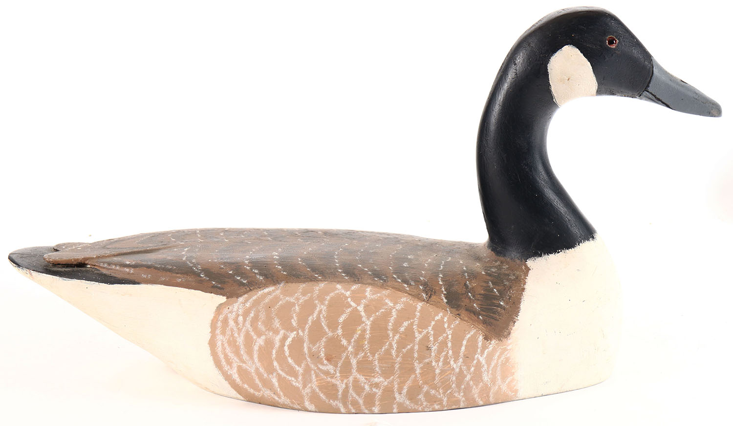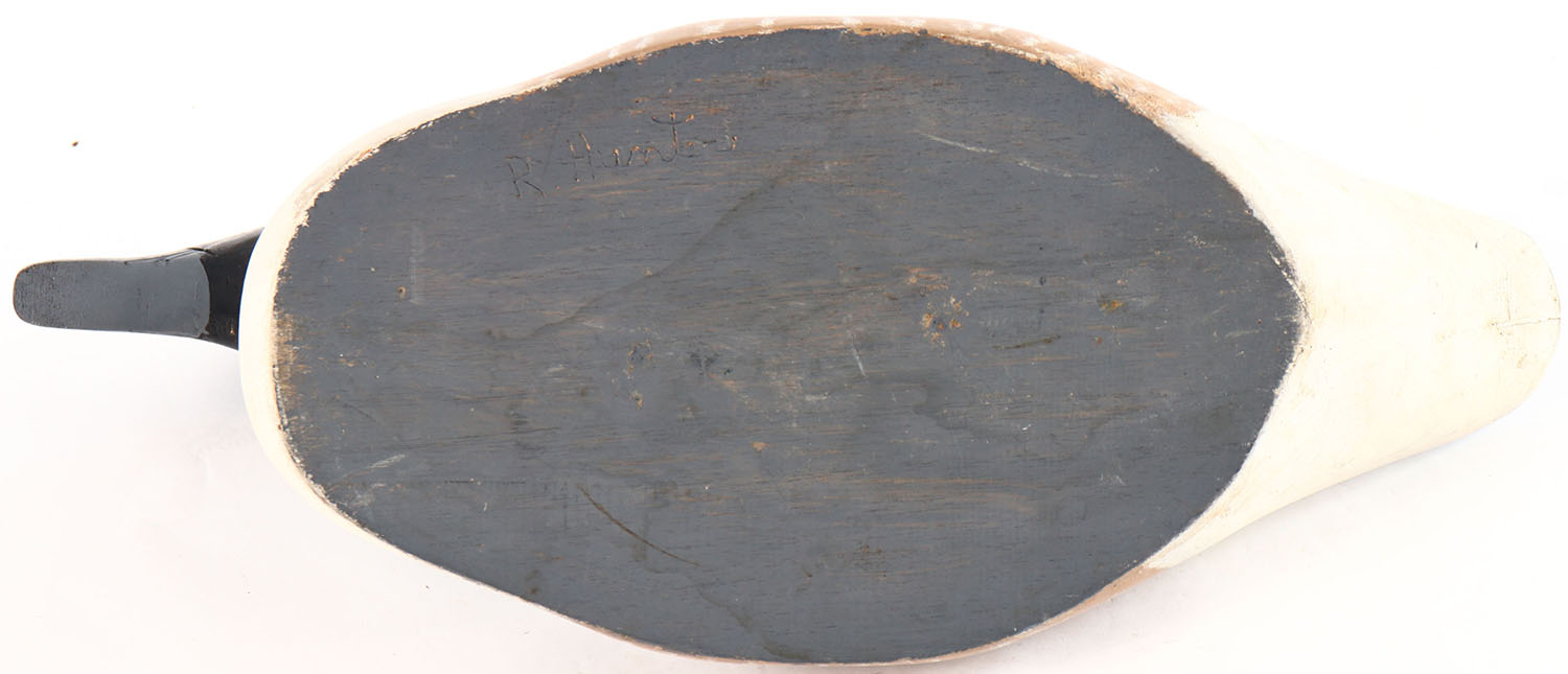 Canada Goose by unknown maker signed R Hunter on bottom, glass eyes, solid wood, original paint, structurally excellent. Grade: Excellent + - Value: 20 to 40