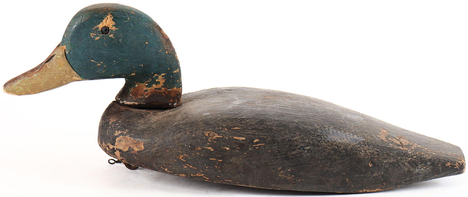 Mallard Drake by unknown maker, glass eyes, solid wood, original paint. Grade: Very Good - Value: 10 to 30