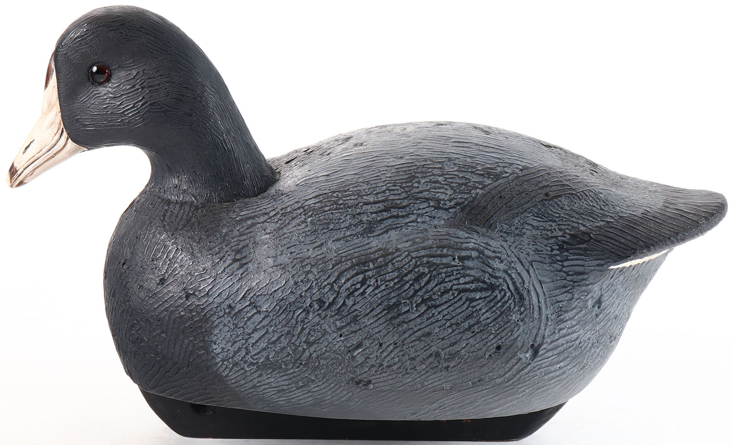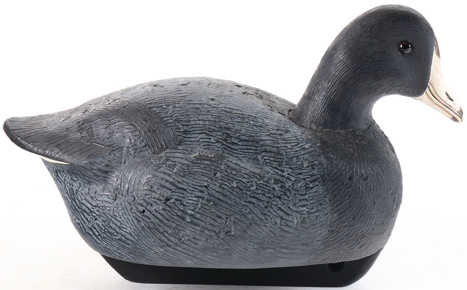 Coot by Don Brown, Springfield, MO , glass eyes, solid wood, original paint, structurally excellent, signed by DON BROWN on bottom. Grade: Excellent + - Value: 30 to 60