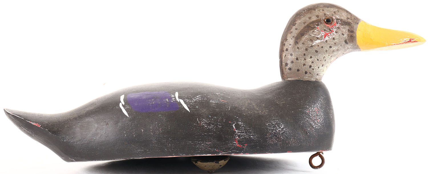 Black Duck by a Pascagoula, MS factory, glass eyes, hollowed out body, repainted, structurally excellent. Grade: Very Good ++ - Value: 10 to 20