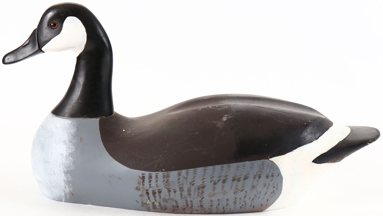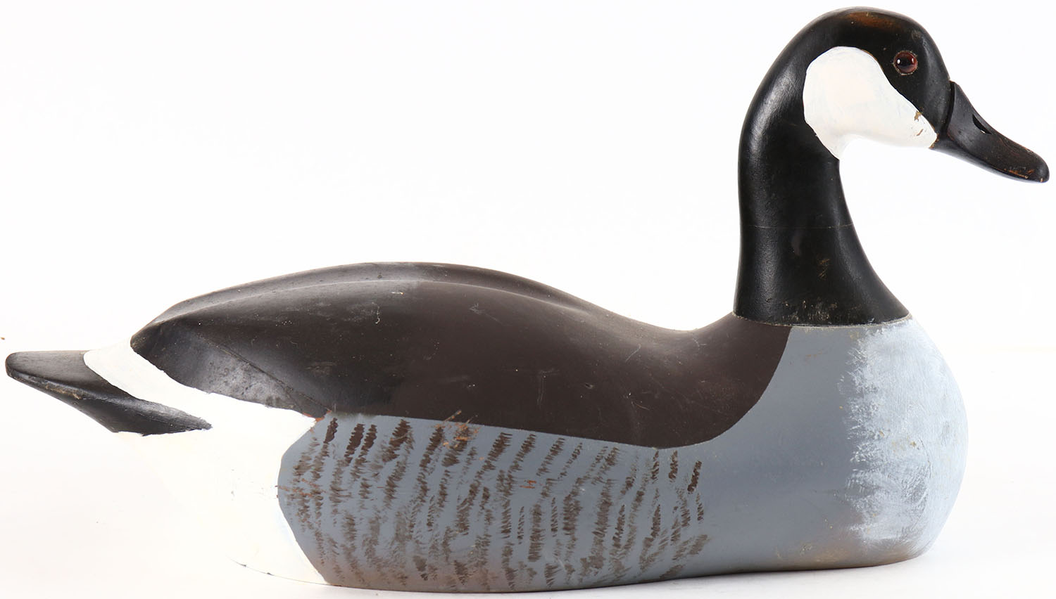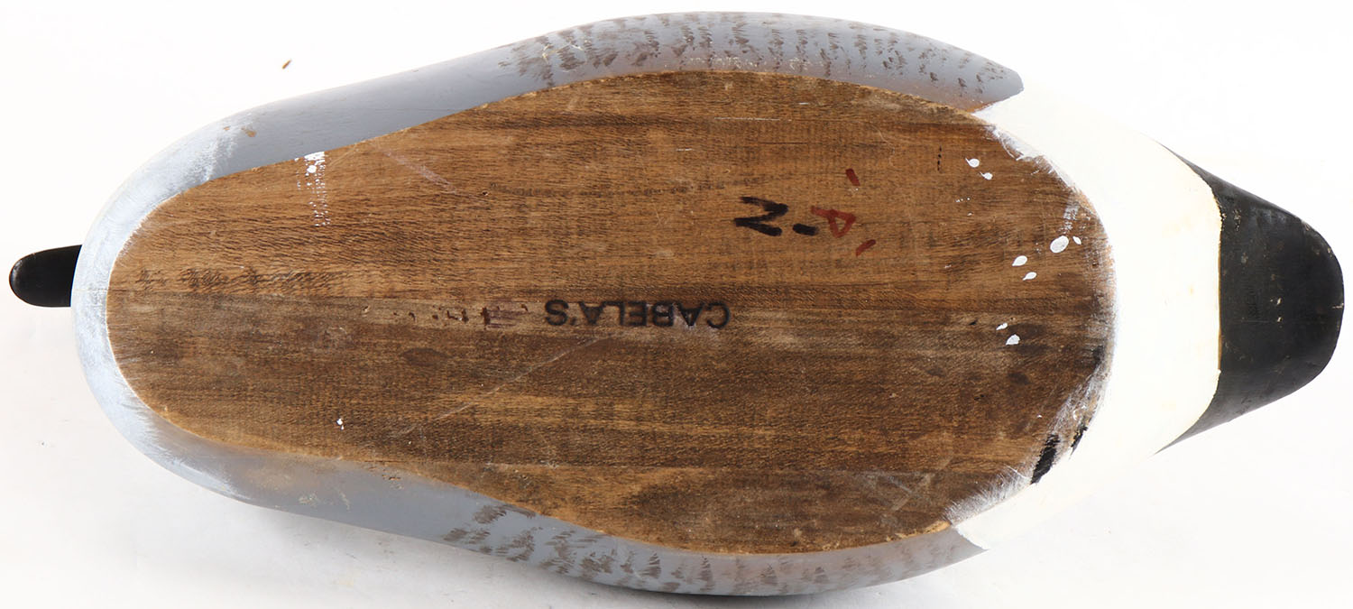 Canada Goose by Cabela's Decoys, glass eyes, solid wood, original paint, structurally excellent, branded CABELA'S on bottom. Grade: Excellent + - Value: 20 to 40