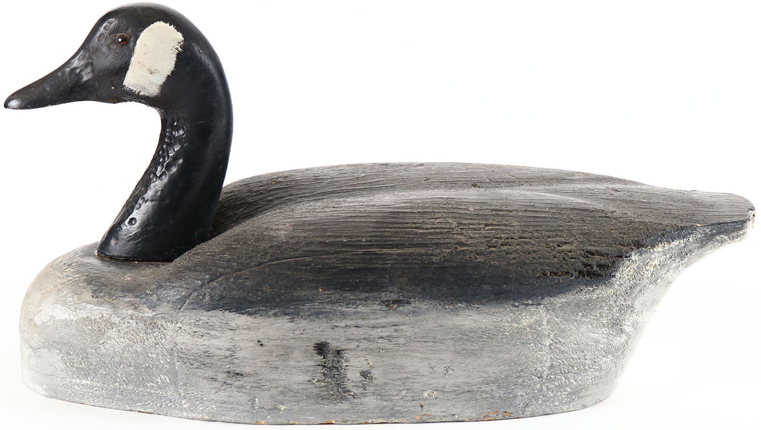 Canada Goose by Herters Decoy Co., Waseca, MN, glass eyes, solid wood, repainted, shot size dents in neck, excellent. Grade: Very Good ++ - Value: 10 to 20