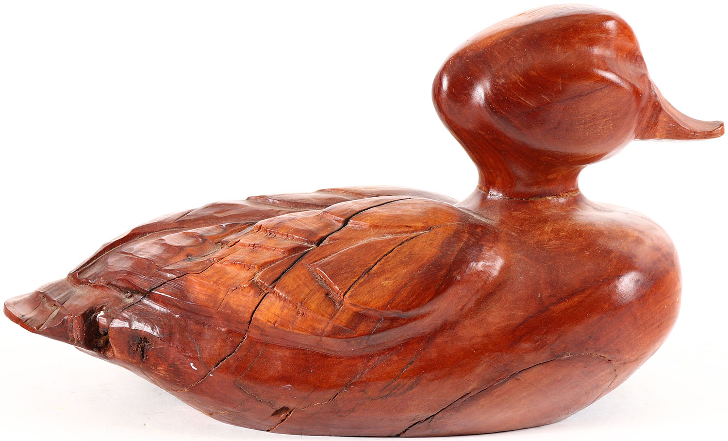 Woodduck by unknown maker, no eyes, solid wood, original stain, structurally excellent. Grade: Very Good ++ - Value: 10 to 20