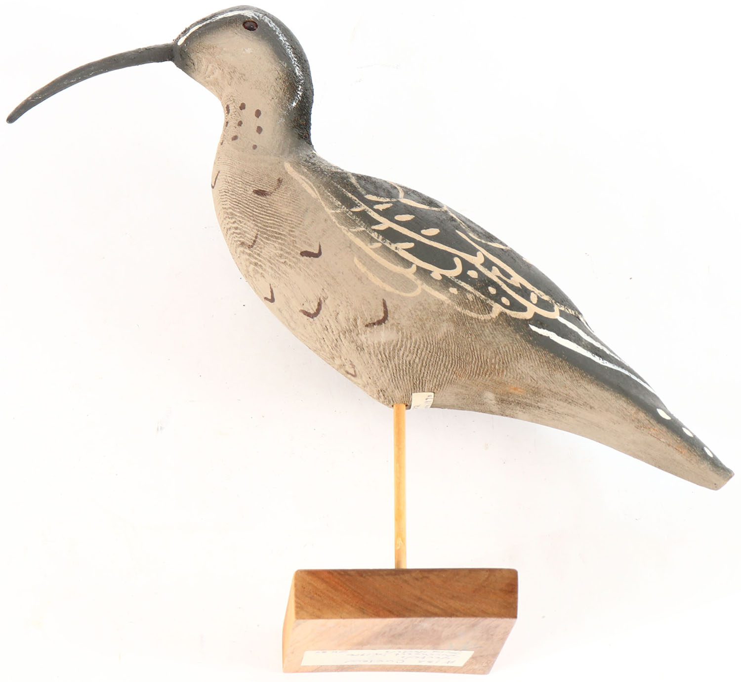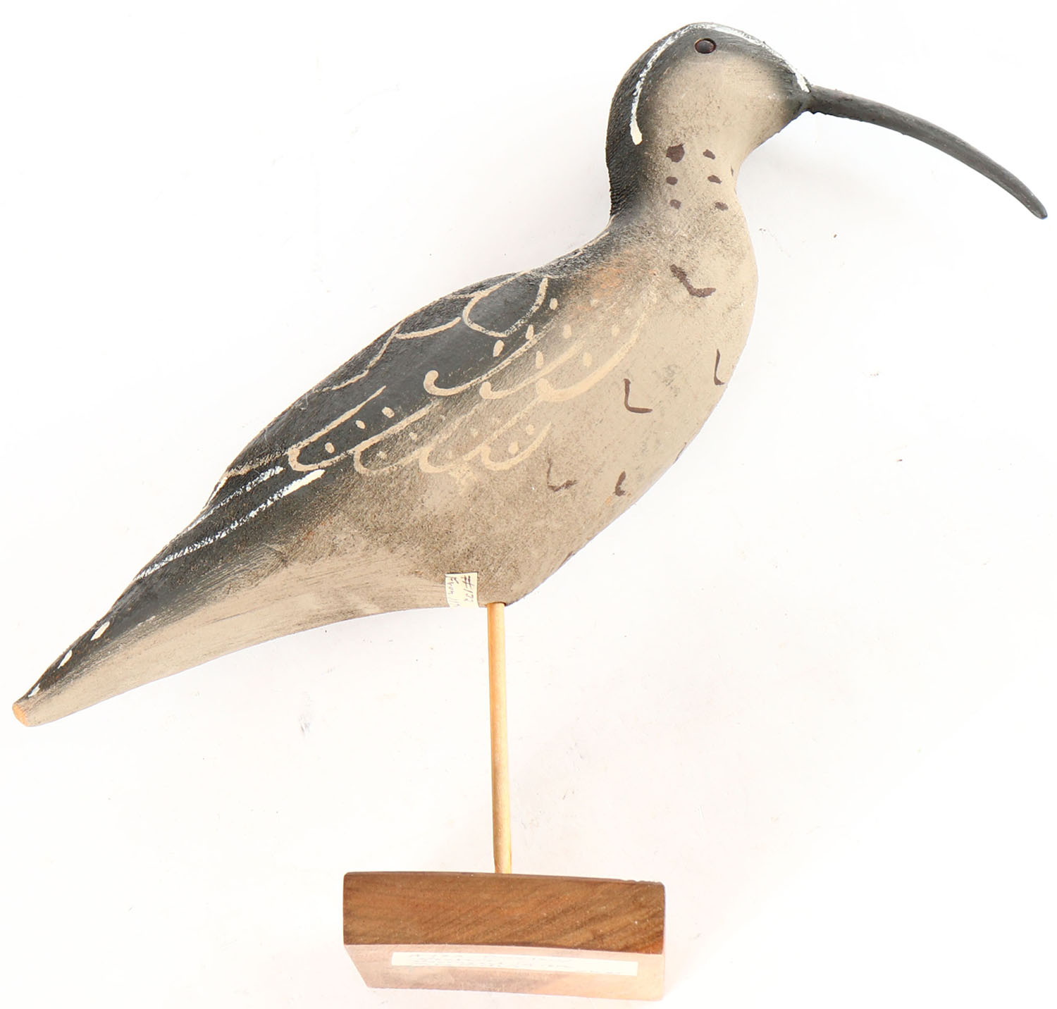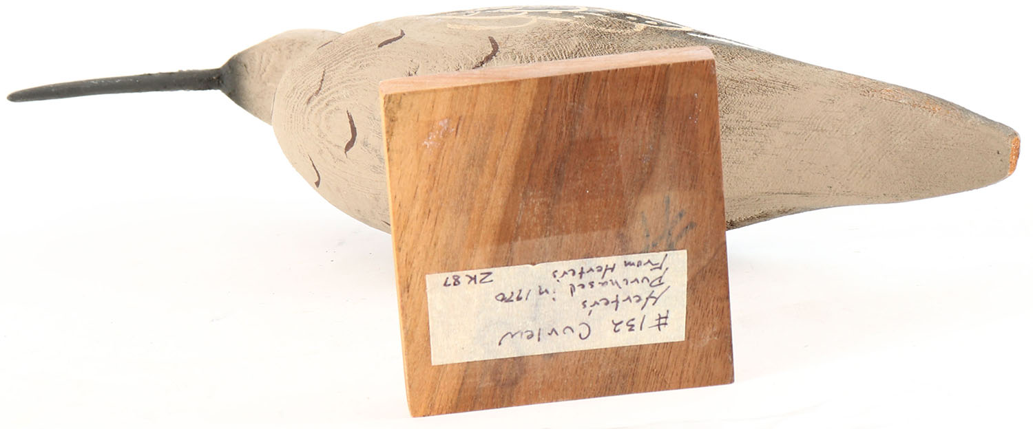 Curlew by Herters Decoy Co., Waseca, MN, 1893 series, glass eyes, solid wood, original paint, structurally excellent, signed on bottom. Grade: Very Good ++ - Value: 70 to 150