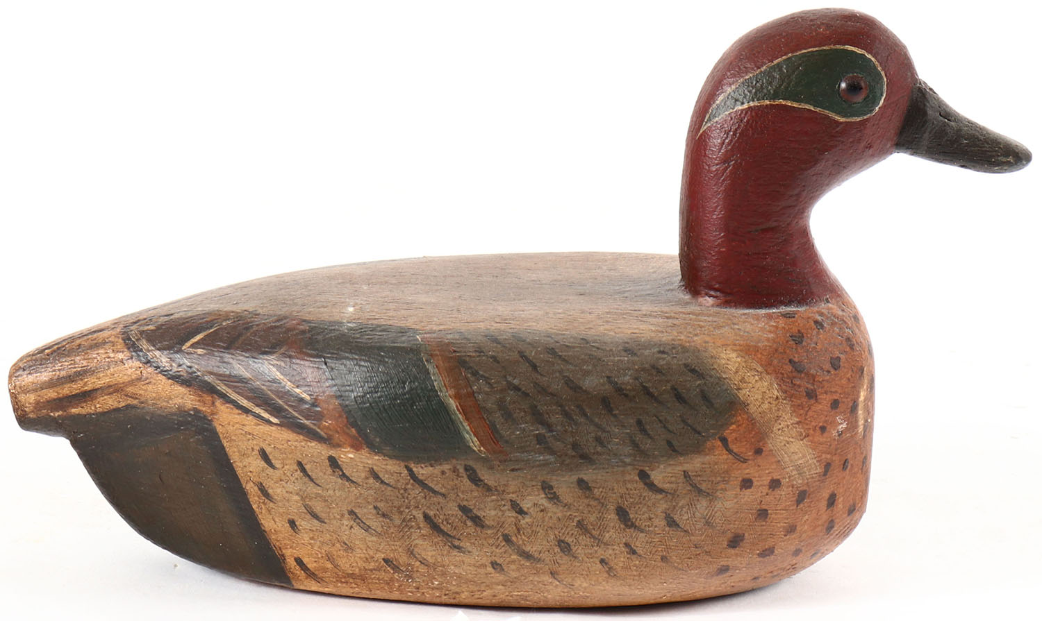 Green Winged Teal Drake by Charles Perdew, glass eyes, hollow wood, original paint, structurally excellent. Grade: Excellent - Value: 30 to 100