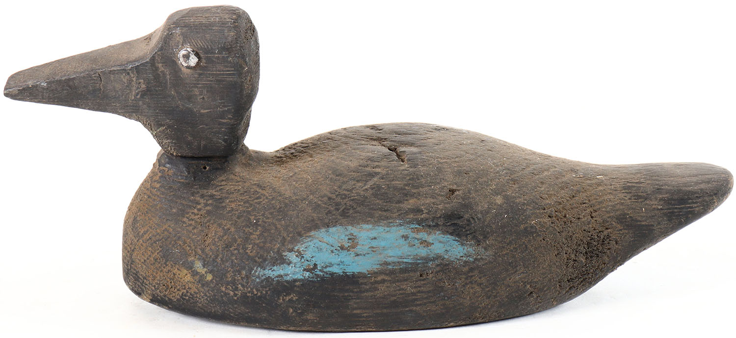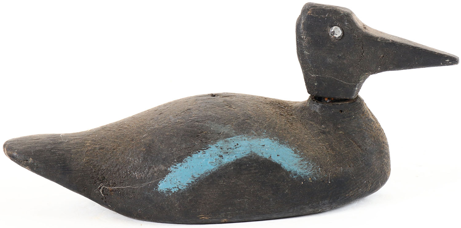 Blue Wing Teal by unknown maker, glass eyes, solid wood, original paint, head is loose. Grade: Very Good - Value: 2 to 10