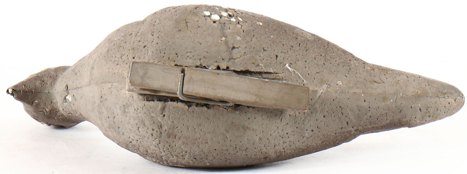 Dove by Carry-Lite Decoys, painted eyes, solid Styrofoam body with some minor wear, original surface, has clip on bottom of body. Grade: Very Good - Value: 2 to 20