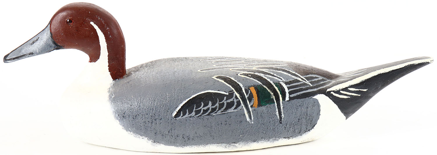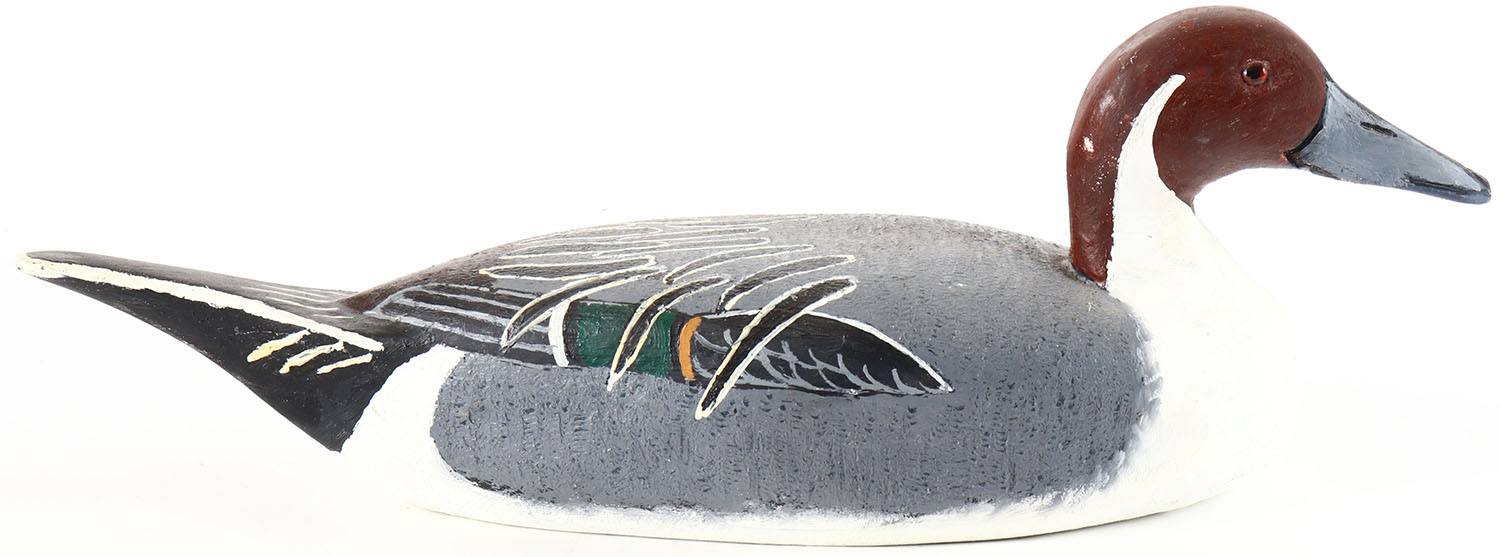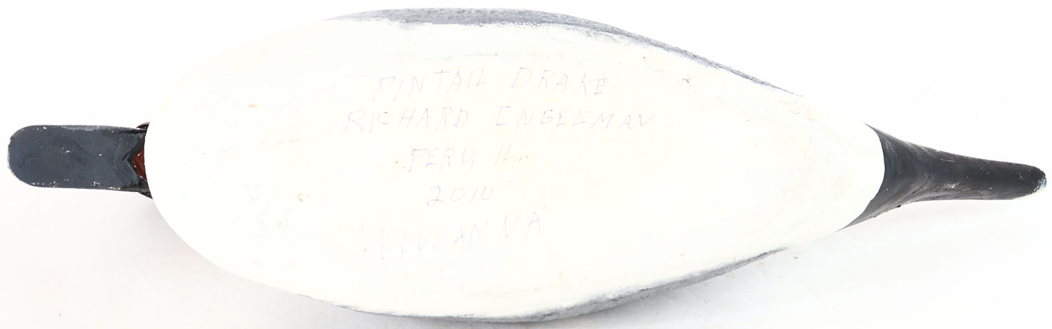 Pintail Drake by Ricard Engelman, Peru, IL, glass eyes, solid wood, repainted, structurally excellent, signed by RICHARD ENGELMAN on bottom. Grade: Excellent - Value: 2 to 40
