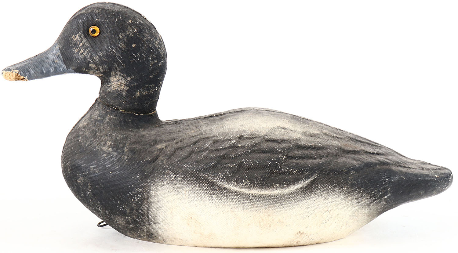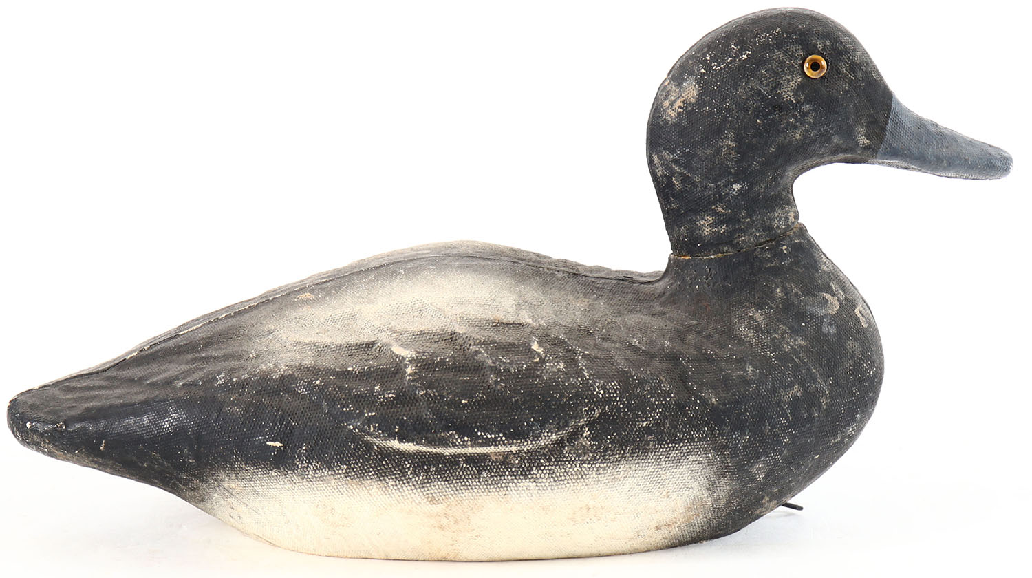 Bluebill Drake by Victor Veri-Lite Decoys, Animal Trap Co. Lititz, PA, glass eyes, paper mache, original paint, chip on bill, wear to body. Grade: Very Good ++ - Value: 20 to 40
