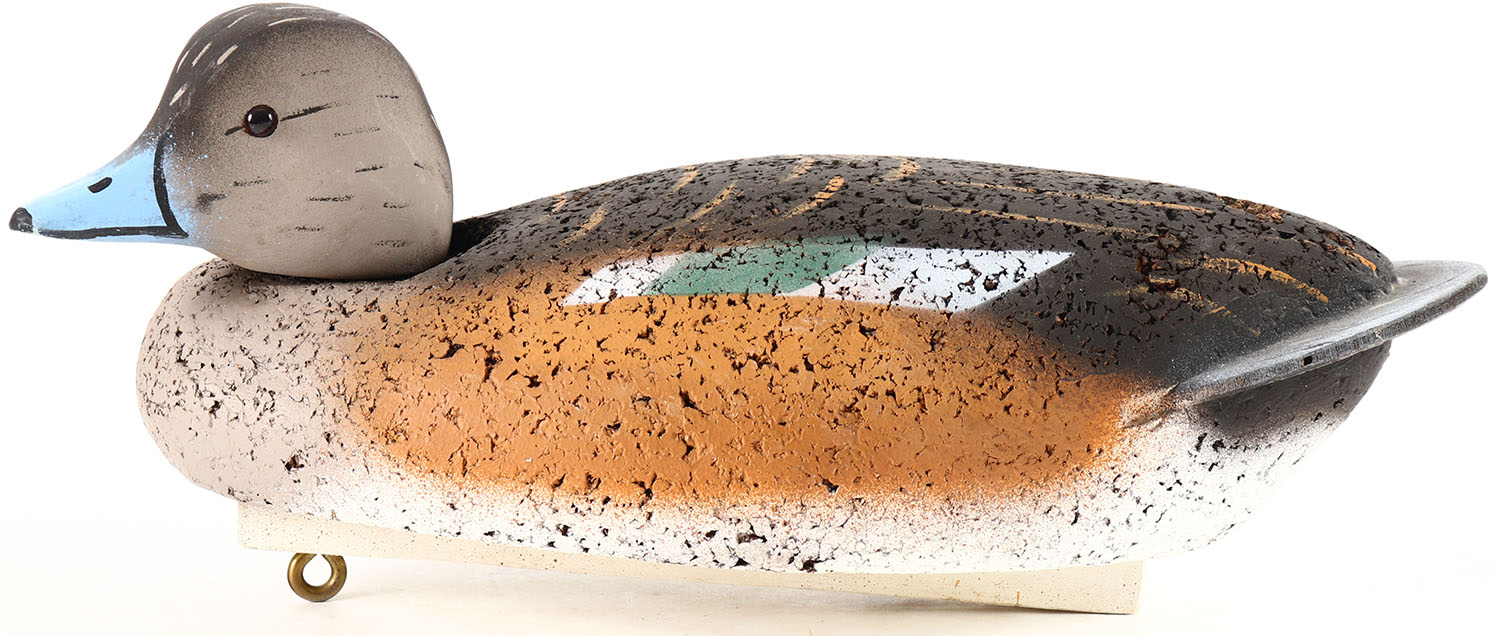 Widgeon Hen possibly LL Bean, glass eyes, solid cork body, wood head, original paint, structurally excellent. Grade: Excellent - Value: 30 to 60