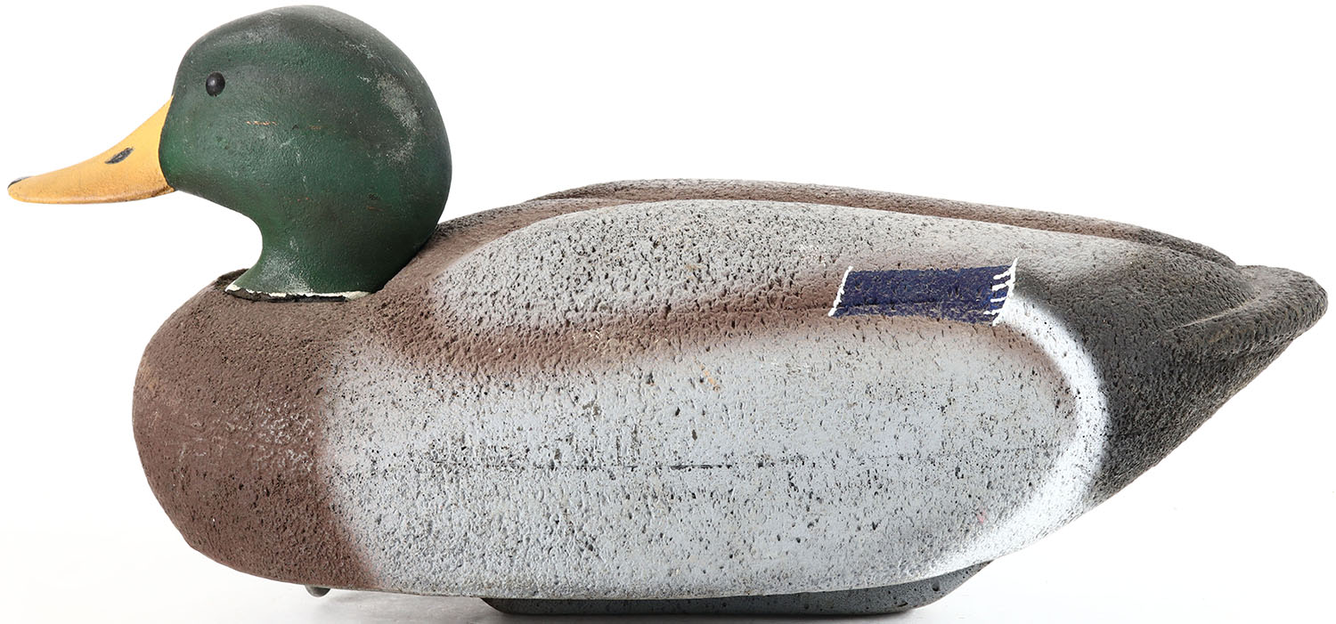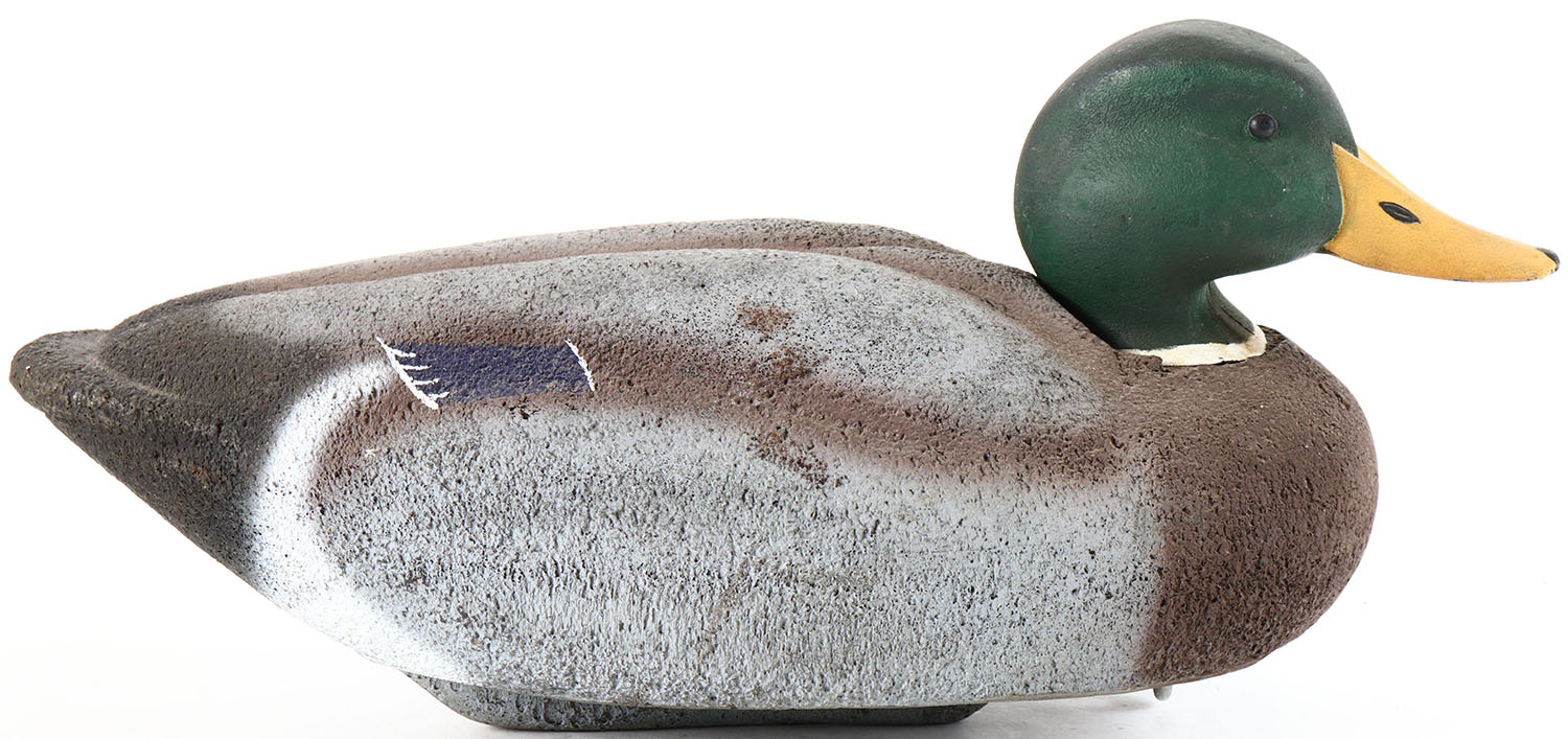 Mallard Drake by unknown maker, glass eyes, solid cork body, original paint, structurally excellent. Grade: Excellent - Value: 10 to 40