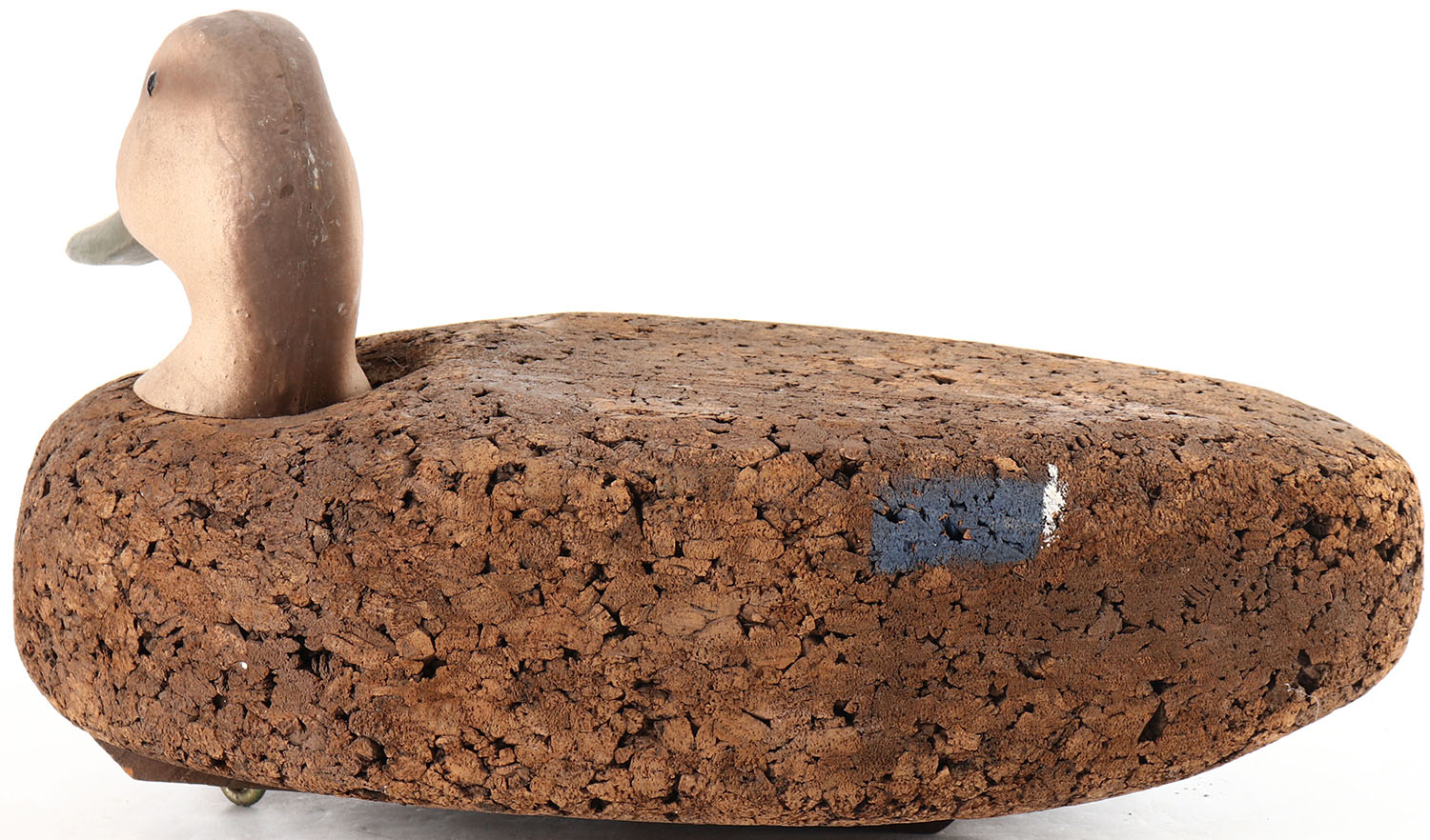 Black Duck by Cabela's, painted eyes, solid cork body, original paint, structurally excellent, branded by CABELA'S on bottom. Grade: Excellent - Value: 10 to 30