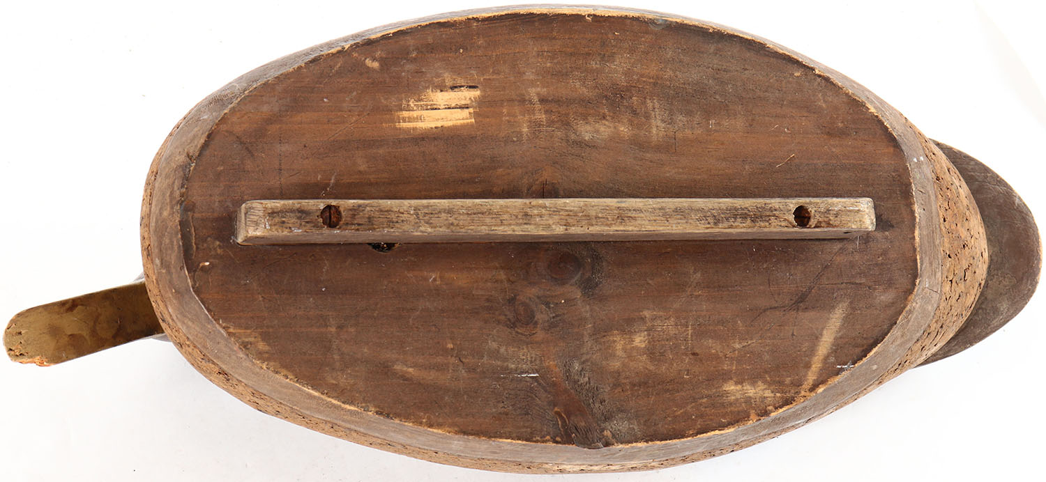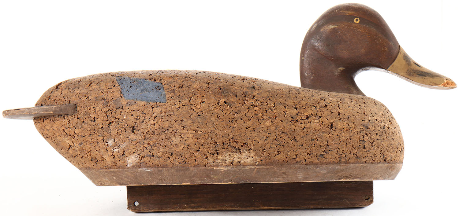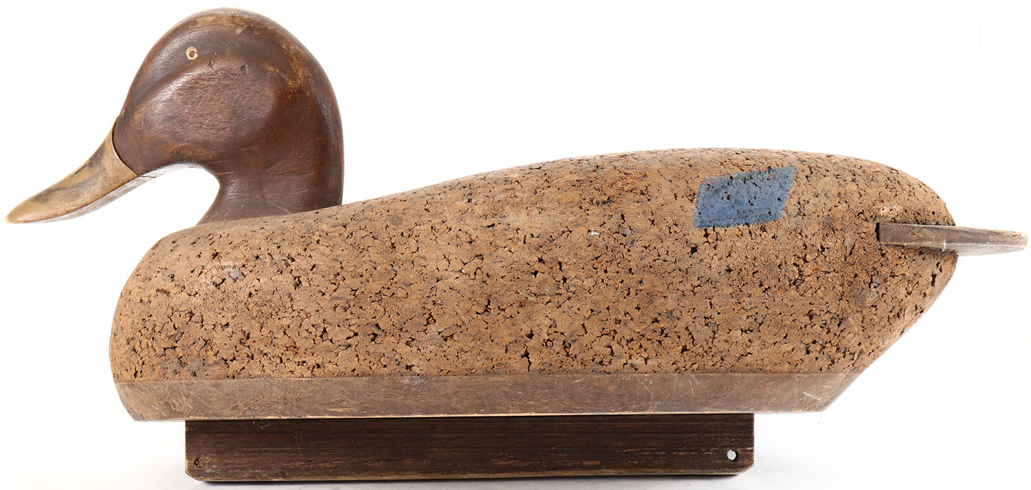 Mallard Hen by unknown maker, painted eyes, solid cork body, original paint, structurally excellent. Grade: Excellent - Value: 6 to 10