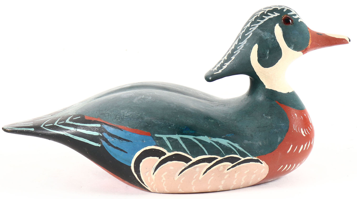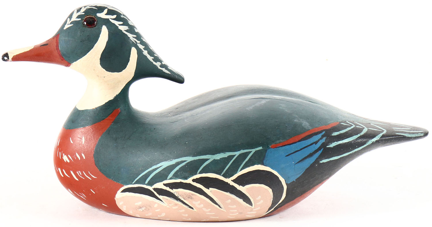 Woodduck Drake by CAH, glass eyes, hollow wood, original paint, structurally excellent. Grade: Excellent + - Value: 10 to 30