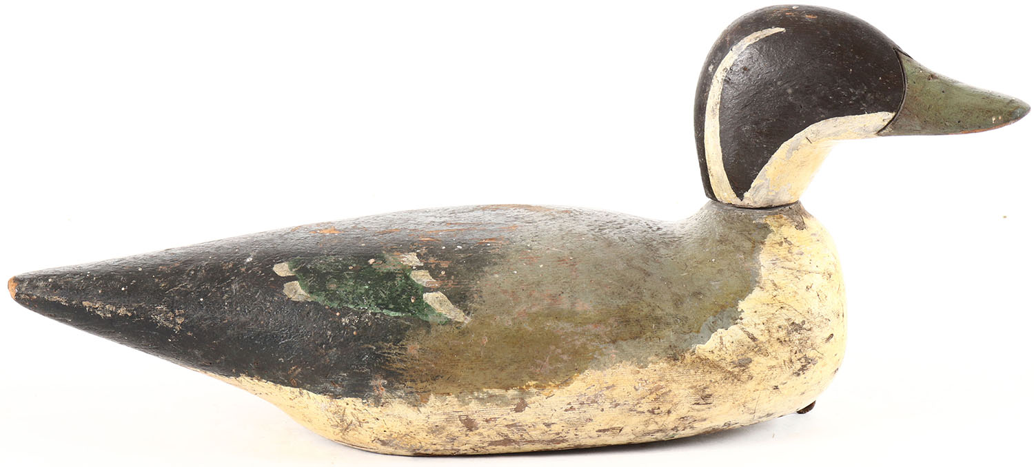 Pintail Drake by unknown factory, no eyes, solid wood, working repaint, head is loose. Grade: Very Good + - Value: 10 to 30