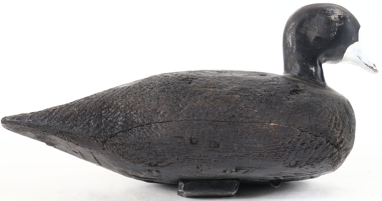 Coot by unknown maker, painted eyes, solid wood, has age cracks on back and bottom. Grade: Very Good + - Value: 10 to 30