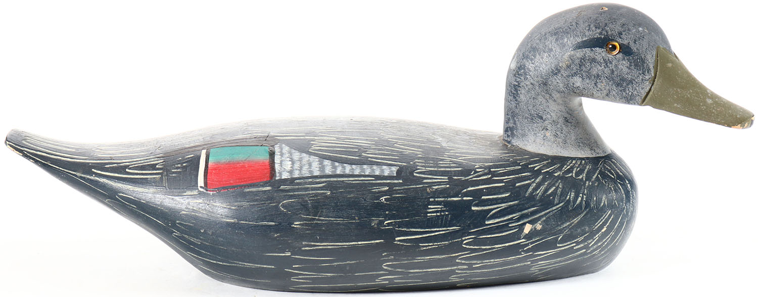 Blackduck by unknown Maryland maker, glass eyes, solid wood, original paint, structurally excellent. Grade: Excellent + - Value: 10 to 30