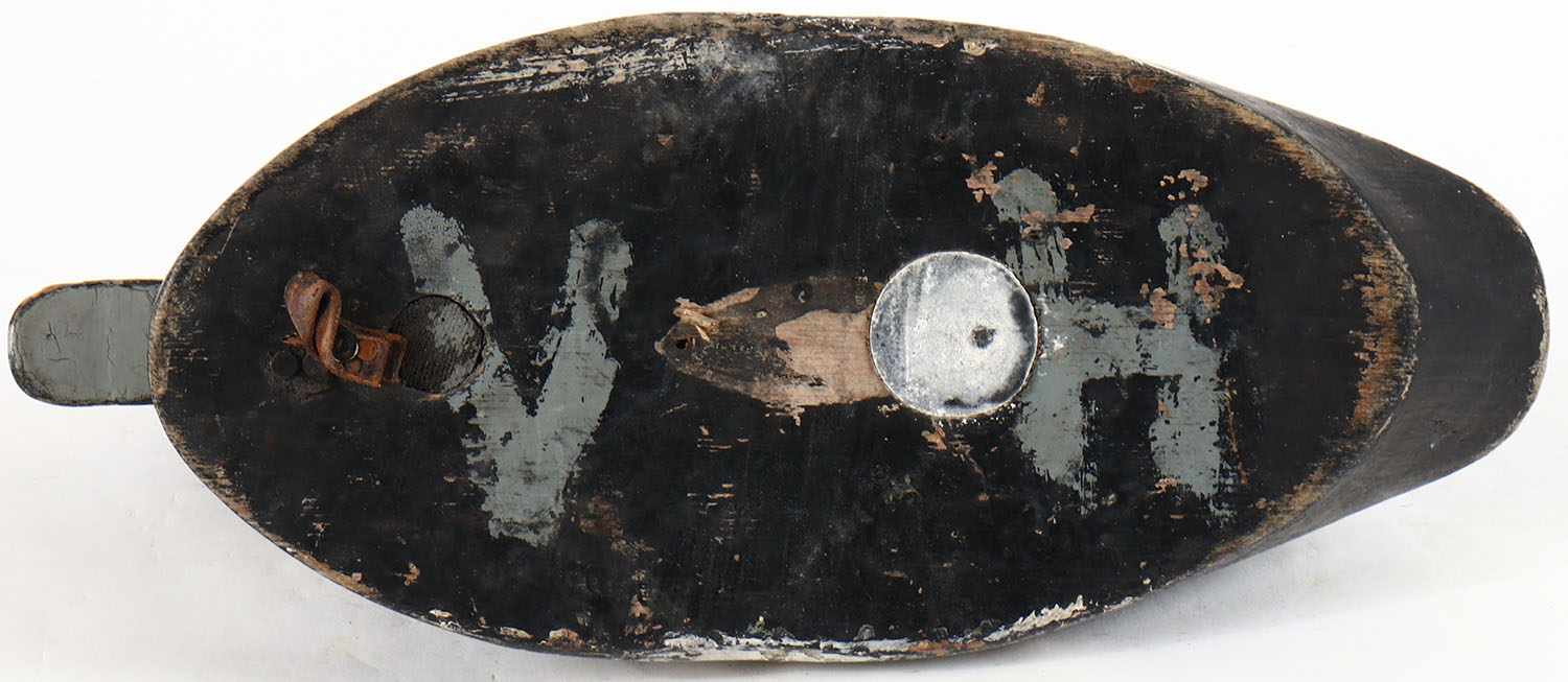 Bluebill Drake by unknown maker, glass eyes, solid wood, original paint, wear to body. Grade: Very Good - Value: 10 to 20