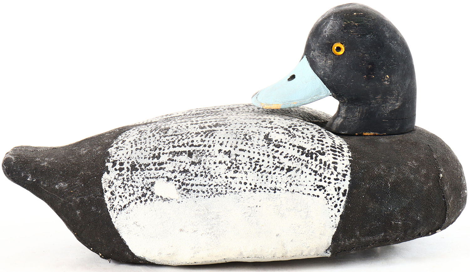 Preening Bluebill Drake by unknown maker, glass eyes, original paint, structurally excellent. Grade: Very Good ++ - Value: 16 to 30