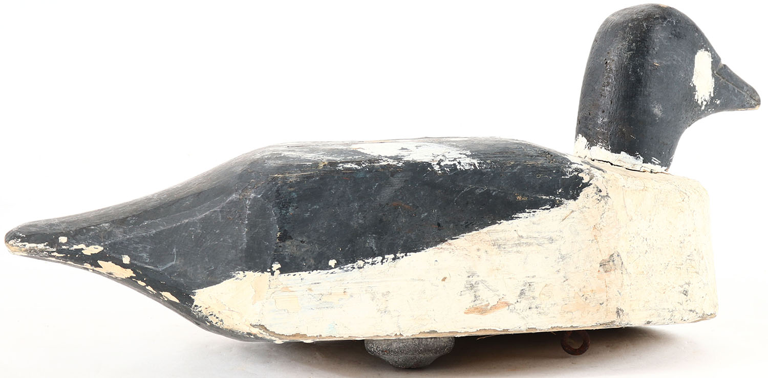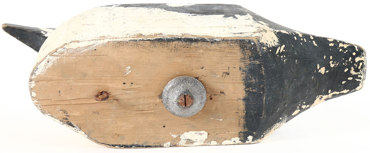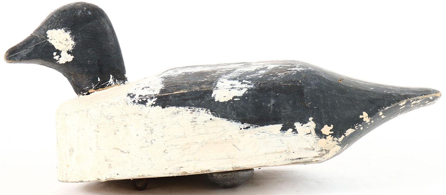 Goldeneye Drake by unknown maker, painted eyes, solid wood, original paint, age cracks on back. Grade: Very Good + - Value: 10 to 20